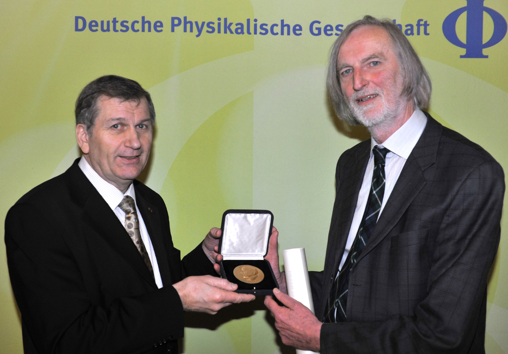 [05.03.2009] Prof. Dr. Dr. h.c. Robert Graham von der Universität Duisburg-Essen ist jetzt mit der Max-Planck-Medaille für theoretische Physik ausgezeichnet worden. Der Präsident der Deutschen Physikalischen Gesellschaft, Prof. Dr. Gerd Litfin, überreichte die mit der Ehrung verbundene Goldmedaille während eines Festaktes auf der 79. Jahrestagung der DPG in Hamburg. Die Max-Planck-Medaille ist eine der weltweit höchsten Auszeichnungen in der Physik und wird für herausragende Leistungen auf dem Gebiet der theoretischen Physik verliehen.