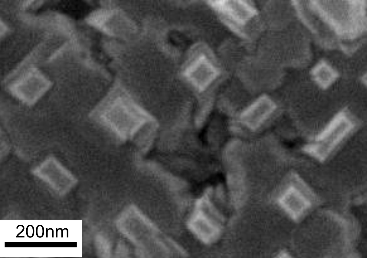- Rasterelektronenmikroskopische Aufnahme des Nanokomposits in der Aufsicht