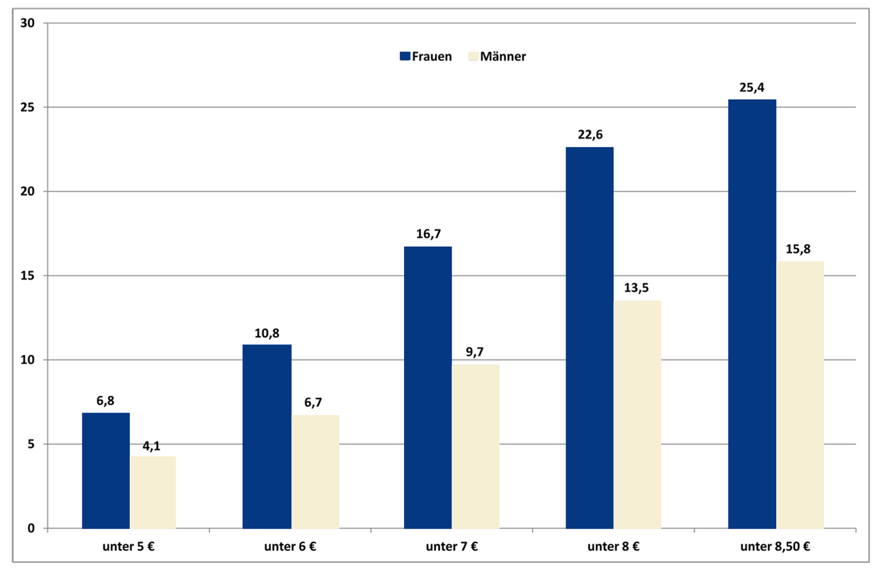 - Anteil der Beschäftigten nach Stundenlohnstufen und Geschlecht (© IAQ)