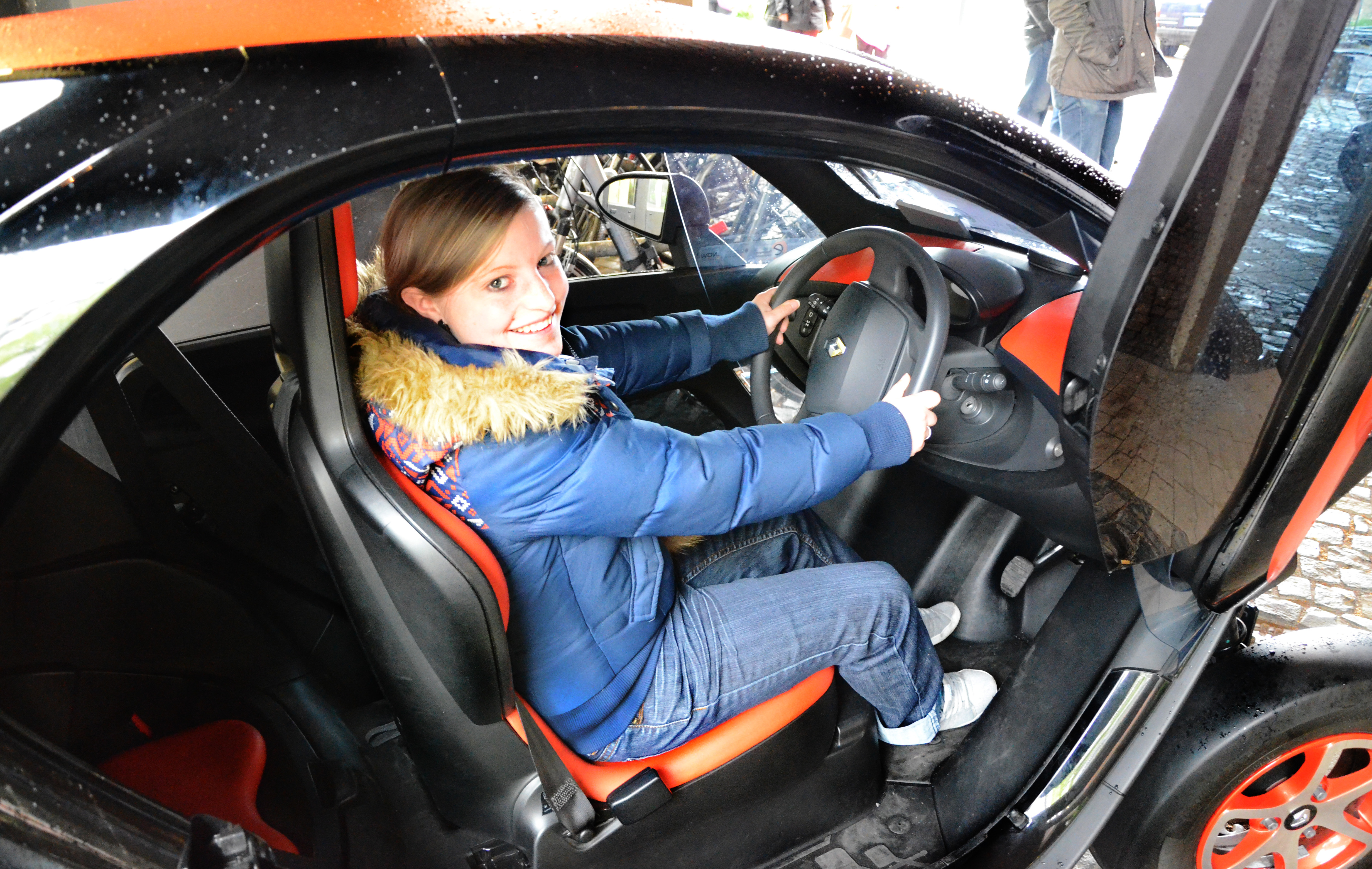 - Studentin Tina Bannert testet die neuen E-Autos am Duisburger Campus