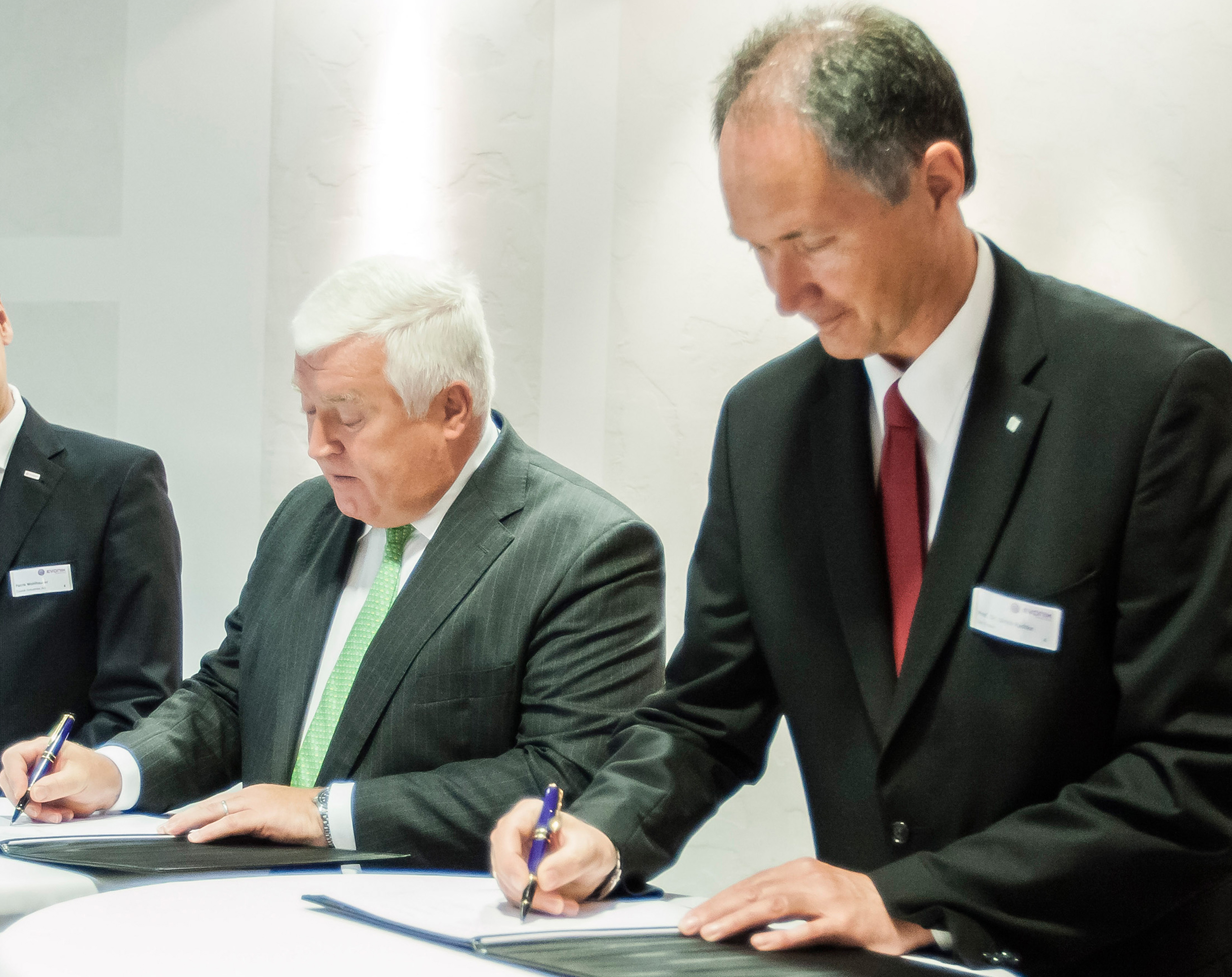 - Kooperationsvertragsunterzeichnung (Evonikchef Prof. Dr. Klaus Engel und Rektor Prof. Dr. Ulrich Radtke (Foto: Evonik)