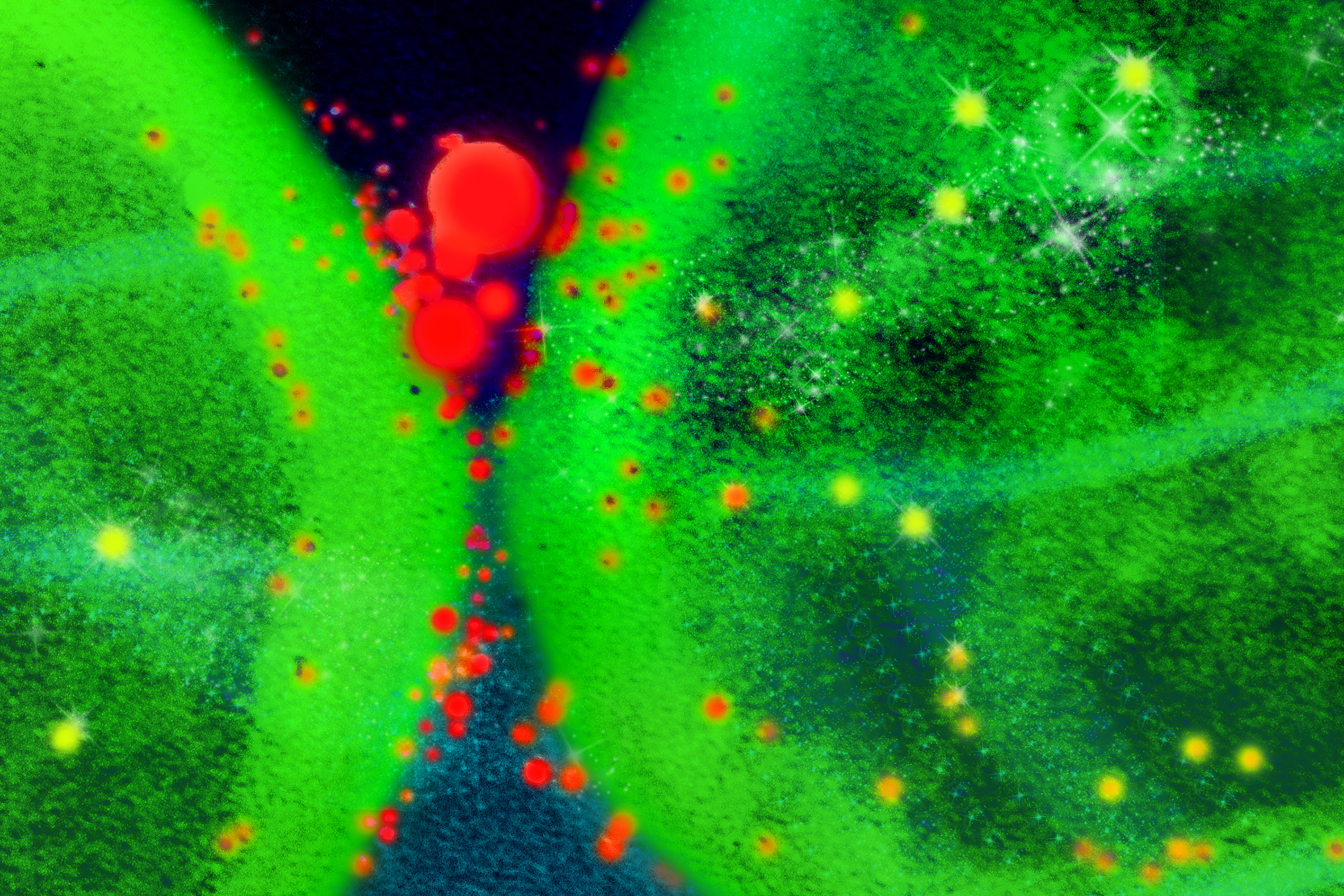 Durch Quanteninterferenz in Kombination mit einer Schlitzmaske lassen sich Moleküle entsprechend ihrer Geometrie trennen. Bildnachweis: Christian Brand, UDE/Uni Wien
