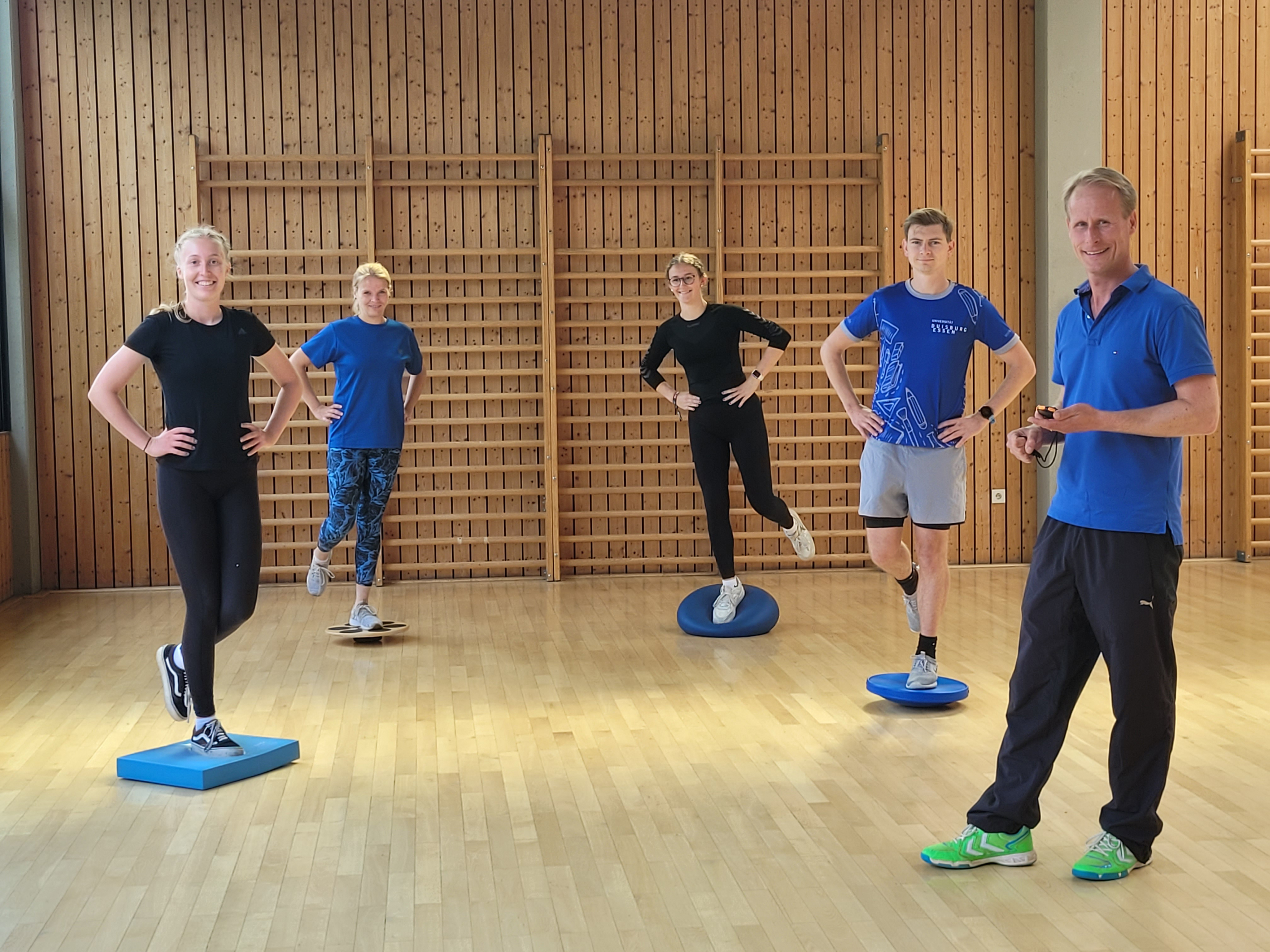 UDE-Prof. Thomas Mühlbauer (r.) mit seinem Team beim Balance-Training.