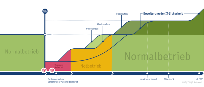 Weiterhin haben wir das Dokumentenmanagementsystem aufgebaut und 2018 die Telefonie übernommen und neu aufgestellt. Auch über den Ausbau des Netzwerks der Universität haben wir viel in der DUeIT berichtet; in unserer ersten Ausgabe hatten wir beispielsweise eine Statistik dazu, wie viele Nutzer:innen und Geräte sich im WLAN befinden. Nicht zuletzt hat das Thema IT-Sicherheit an Bedeutung gewonnen, nicht nur wegen des Cyberangriffs, der uns getroffen hat. Hier haben wir uns auch personell weiter aufgestellt, denn Themen wie die Next-Generation-Firewall gab es 2015 noch nicht. Virtualisierung, Identitäts-Management und Lern-Management-Systeme haben in der Bedeutung zugenommen und sind komplexer geworden. Das sind nur einige Beispiele für große Projekte, die uns in den letzten 10 Jahren beschäftigt haben.