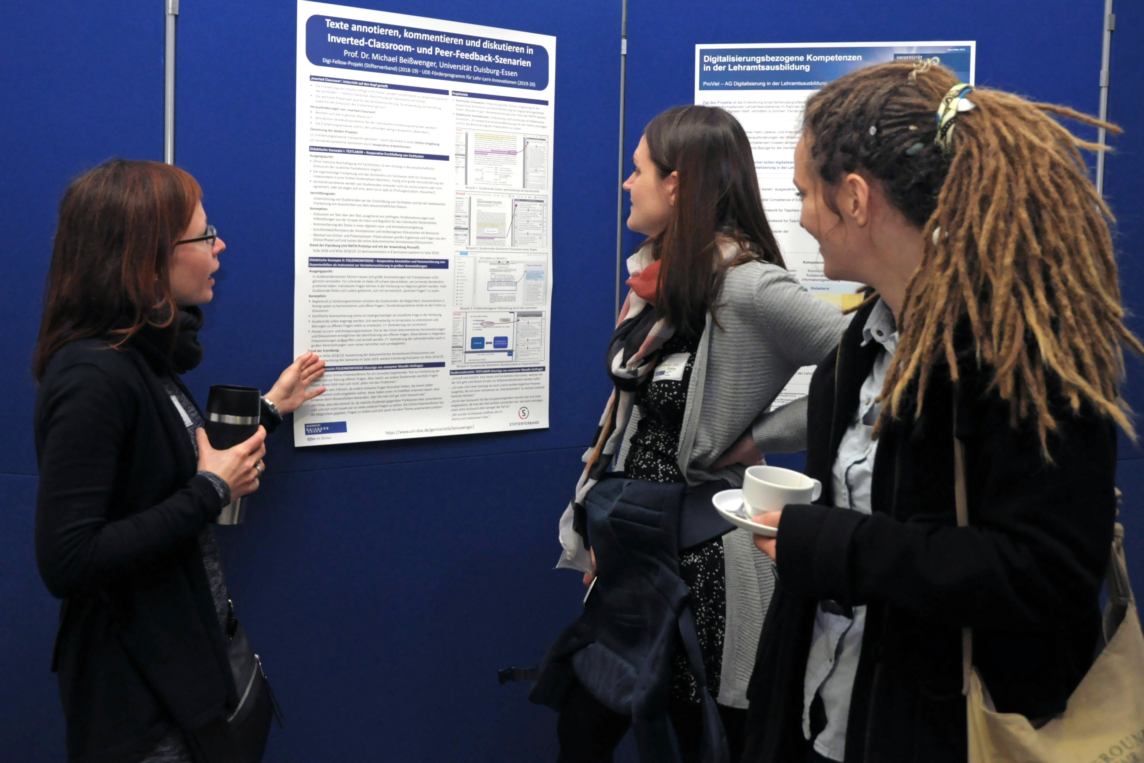 Während der Veranstaltung wurde ein Überblick über bereits bestehende Projekte und Vernetzungsmöglichkeiten von Akteur*innen in der Lehrer/-innenbildung an der UDE gegeben. Dazu gehörten die Fellowship-Projekte Digitale Lehrertasche von Prof. Dr. Inga Gryl (Didaktik des Sachunterrichts), Texte annotieren, kommentieren und diskutieren in Inverted-Classroom- und Peer-Feedback-Szenarien von Prof. Dr. Michael Beißwenger (Institut für Germanistik) sowie die Angebote der AG Digitalisierung in der Lehrerbildung aus dem Projekt ProViel und der AG Schule und Medien des Learning Lab.