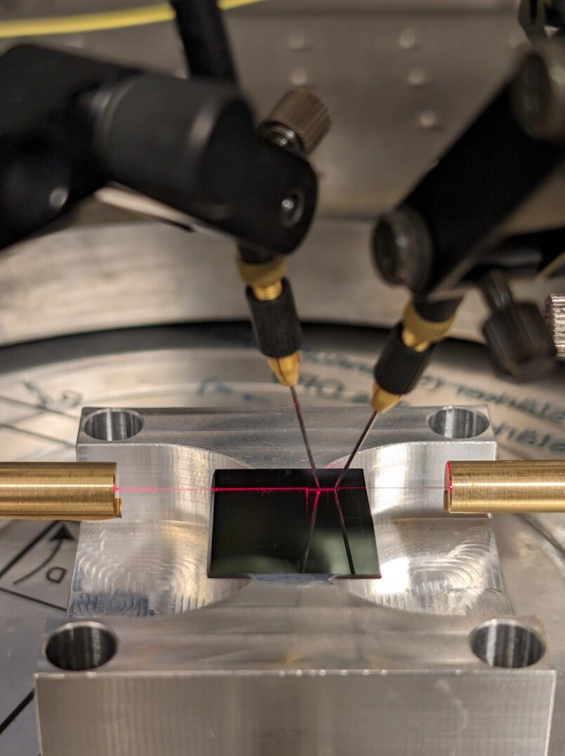 The team from the Department of Electronic Components and Circuits (EBS) at the University of Duisburg-Essen (UDE) is working together with the Fraunhofer Institute for Microelectronic Circuits and Systems (IMS) on the development of innovative photonic integrated circuits (PICs). This collaboration combines the expertise of both institutions to create cutting-edge solutions in photonics. The basic components for the circuit platform are simulated and characterised at EBS. This work forms the foundation for the integration of the technology at Fraunhofer IMS.