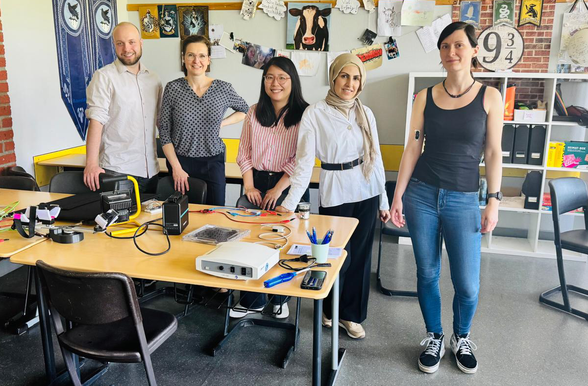 In our Fluid Mechanics session during the Girls' day , the school students tried simple experiments that gave an insight into hydrostatics, aerodynamics, combustion and nanomaterials in the context of fuel cells.