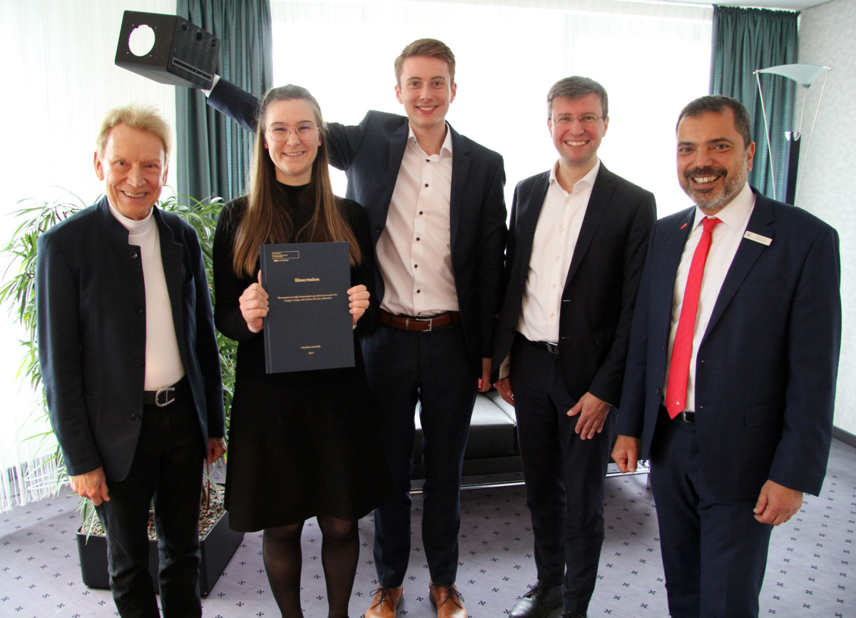 Simon Schmeing und Alexandra Welp berichteten von ihren Fortschritten bei der experimentellen und theoretischen Untersuchung von Carnotbatterien, während Ilyas Adaköy über die Gasphasenkinetik von CVD-Vorläufern und Niklas Tomasik über mechanistische Untersuchungen phosphorhaltiger Flammenschutzmittel berichtete.