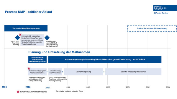 A new phase of campus development is planned for 2026 at the Duisburg campus of the University of Duisburg-Essen. With new buildings and renovations, a ‘campus of the future’ is gradually taking shape: a place where innovative teaching, internationally competitive cutting-edge research and modern working conditions come together in ideal conditions – interdisciplinary, networked and open to synergies. Construction work is deliberately concentrated in specific areas so that teaching, research and campus life can continue as smoothly as possible during the construction period.