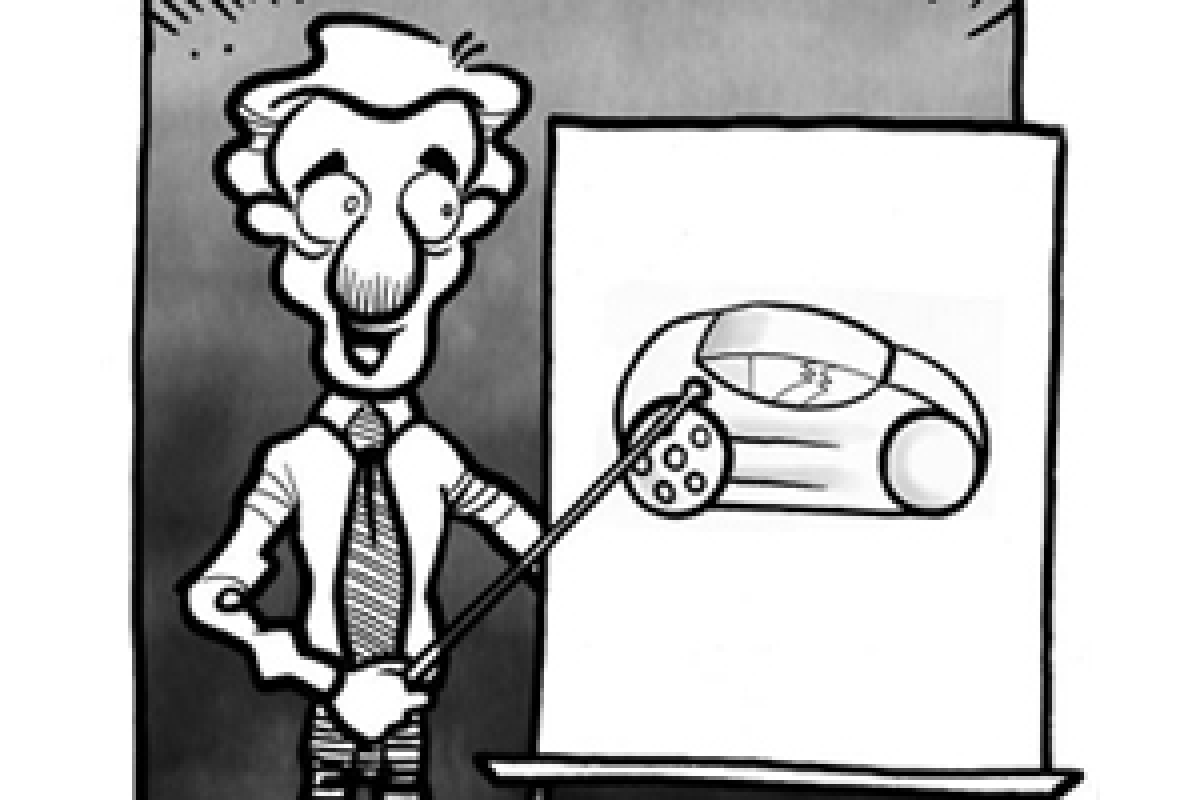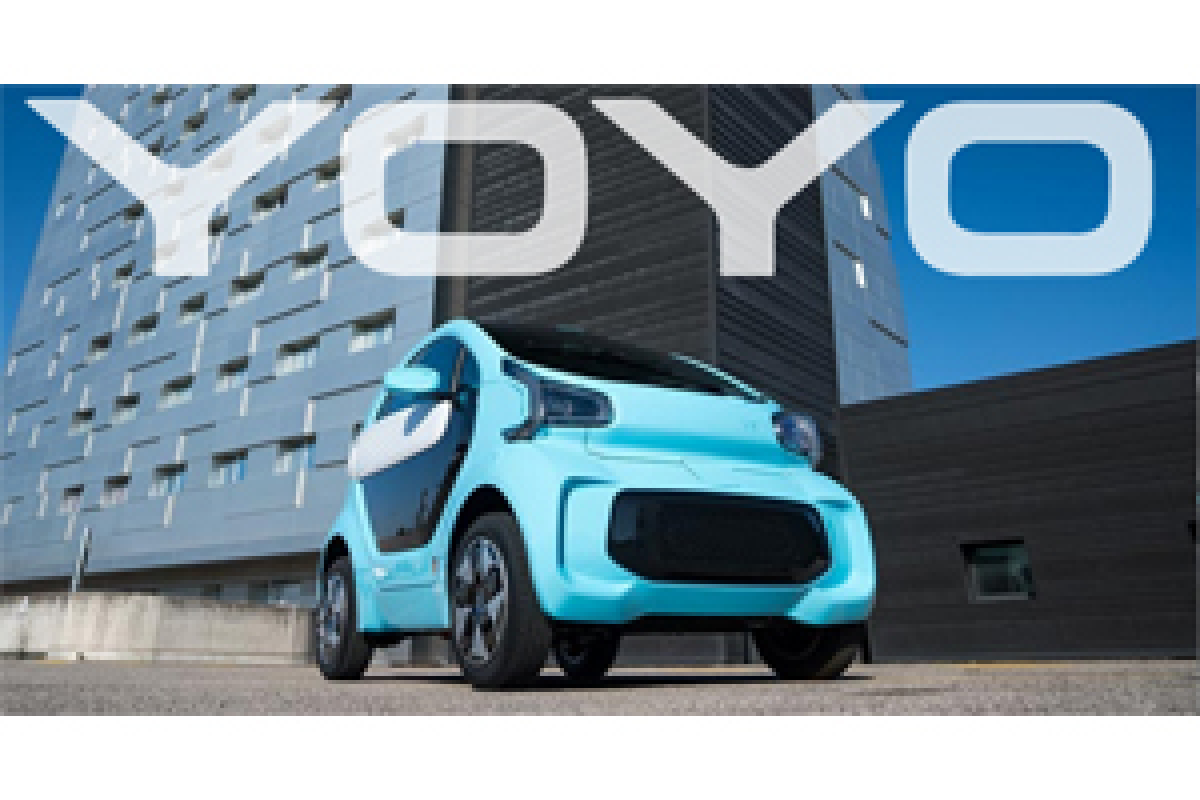 Vorführung der individuellen Mobilität der Zukunft in einem kleinen elektrisch betriebenen Automobil.
