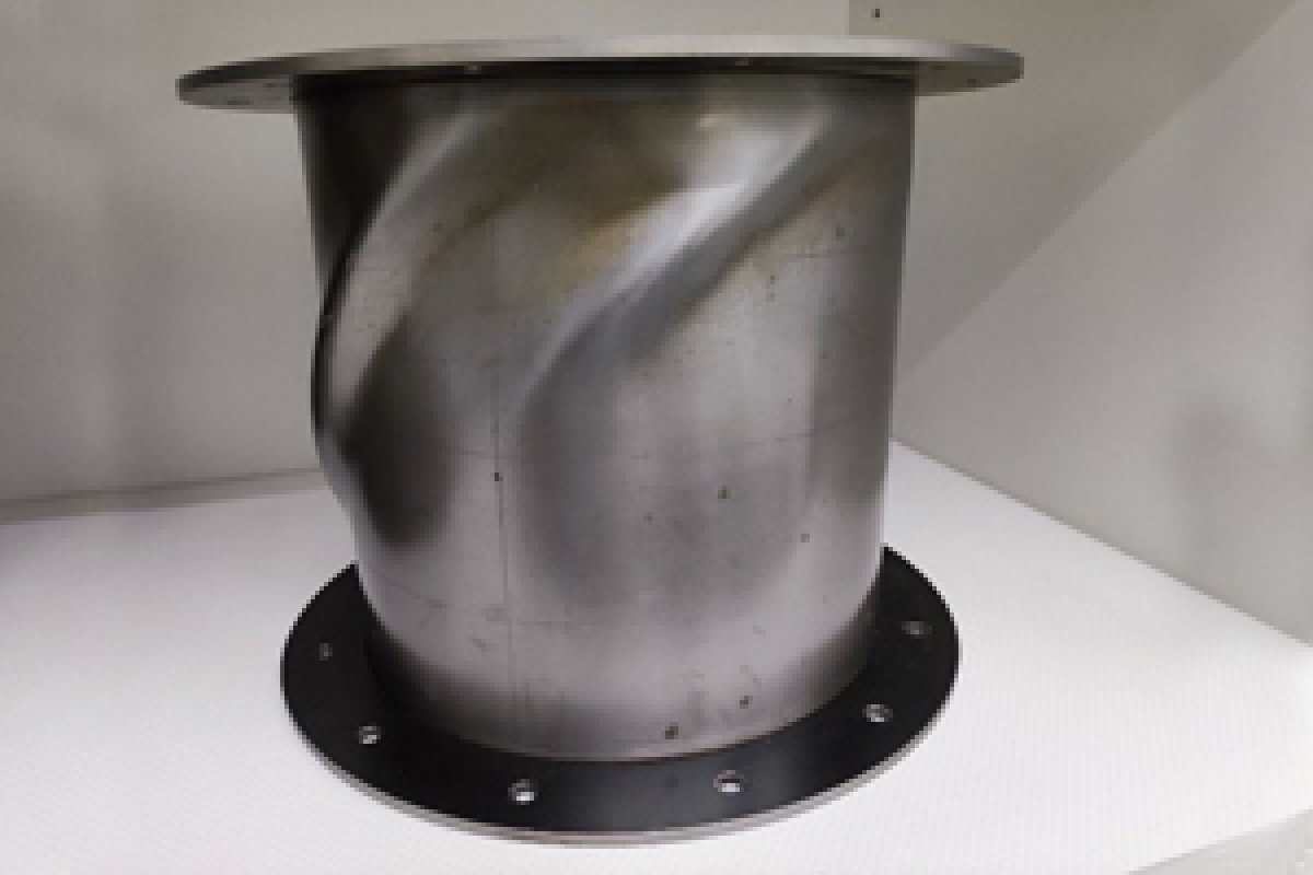Bei diesen Exponaten handelt es sich um Schalenprüfkörper, welche in Beulversuchen untersucht wurden. Stählerne Schalentragwerke werden aufgrund ihrer strukturellen Effizienz mit den hohen Materialfestigkeiten von Stahl in verschiedenen Bereichen, wie z.B. für Windkrafttürme, Behälter, Silos sowie Schornsteine eingesetzt. Aufgrund der genannten Eigenschaften ist es möglich, sehr filigrane Konstruktionen zu realisieren, welche enormen Belastungen standhalten können. Durch die Dünnwandigkeit der Schalenkonstruktionen ist es jedoch sehr wahrscheinlich, dass die Stabilität des gesamten Tragwerks oder eines Teiles durch das Versagensphänomen „Beulen“ verloren geht. Um das Beulverhalten experimentell zu ermitteln und mit numerischen Verfahren zu untersuchen werden die hier dargestellten Kleinprüfkörper untersucht, welche maßstabsgetreu zu den Originalbauteilen ausgebildet werden.