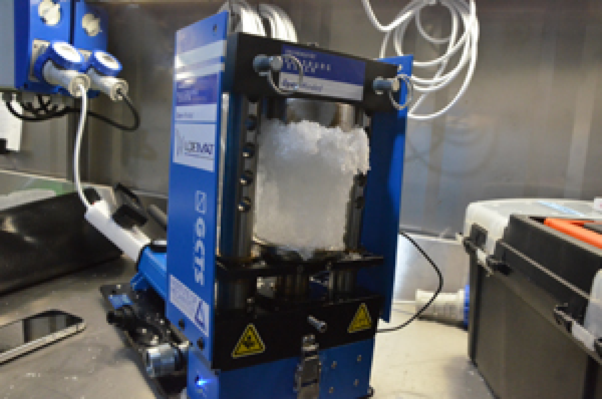 Der Klimawandel ist eine globale Herausforderung. Die polaren Regionen beeinflussen in hohem Maße das globale Klima. Die Materialwissenschaft hilft dabei, den Einfluss des konsolidierten Eises auf die globalen Wärmeströme zu verstehen. Mit unserer mobilen Prüfmaschine für Druckfestigkeiten bestimmen wir die Festigkeit und das Verformungsverhalten von Meereisproben aus dem antarktischen Ozean. Dafür sind wir mit verschiedenen Expeditionen bereits drei Mal in den südlichen Ozean gefahren und haben dort mechanische Versuche durchgeführt. Die gewonnenen Daten können genutzt werden, um das zukünftige Meereisverhalten und den Einfluss der Veränderungen auf das Klima zu verstehen.