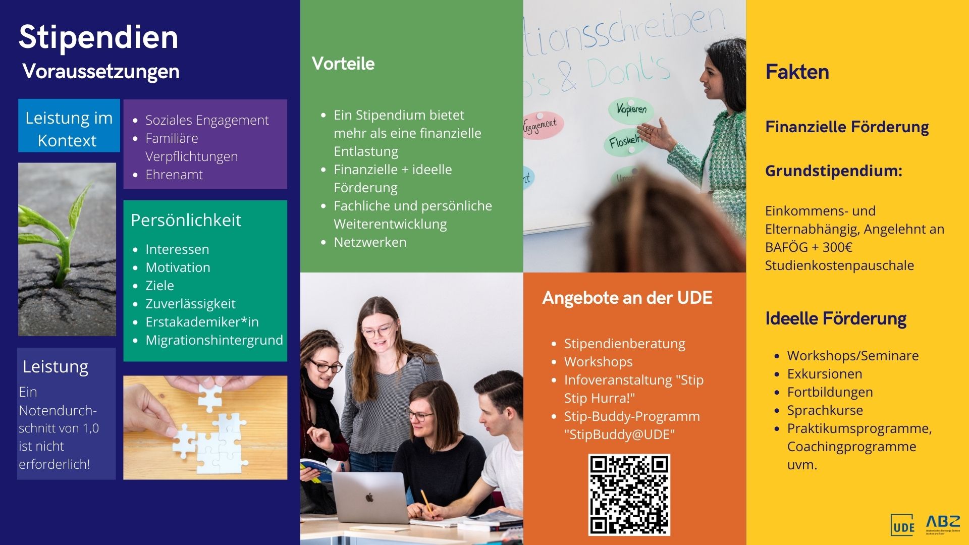 Über Workshops, Stipendieninfoveranstaltungen, das Stip-Buddy-Programm und/oder die Stipendiensprechstunde haben Sie die Möglichkeit, sich mit dem Thema vertraut zu machen und Ihre Fragen in einem vertraulichen Umfeld zu klären