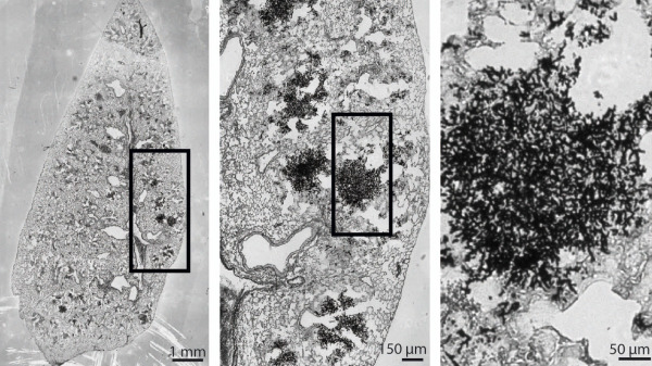 Grocott’s staining of Aspergillus fumigatus infected mouse lung sections.
