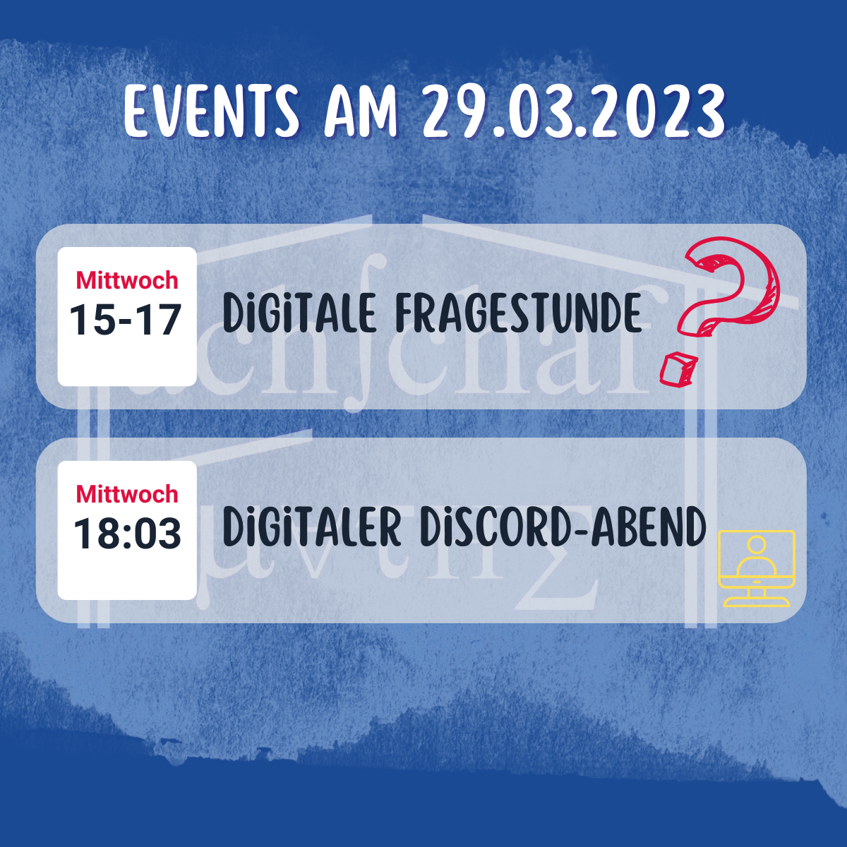 Der Mittwoch wird online stattfinden. Ihr bekommt ab 15 Uhr auf Zoom die Möglichkeit, alle Fragen zu stellen, die ihr nicht schon am Dienstag losgeworden seid.