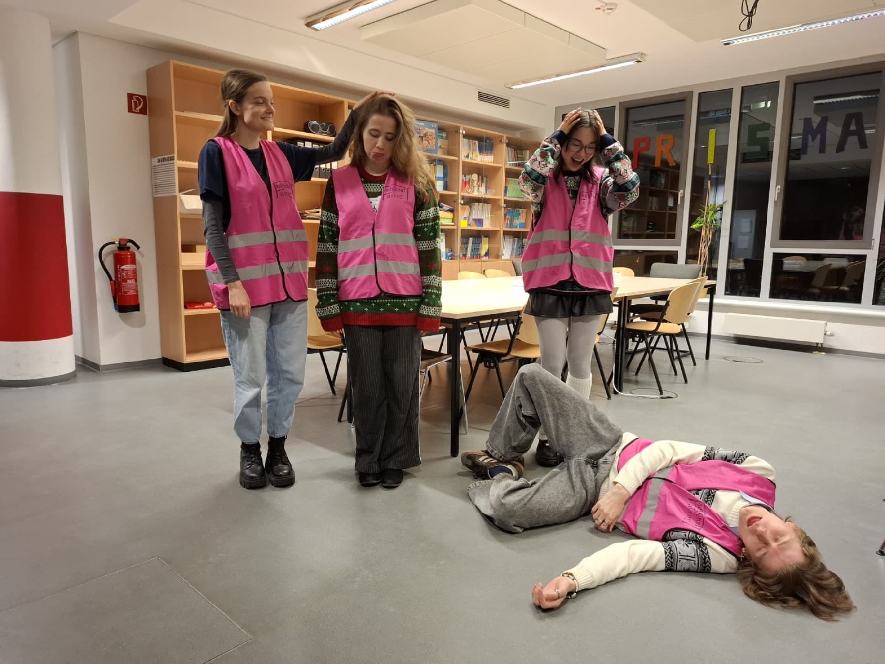 Hi, wir sind das Awareness-Referat der Fachschaft Mathe (v.l.: Finja, Jana, Lotte, Finn) und kümmern uns unter anderem darum, dass es auf Partys und größeren Veranstaltungen des FSR eine sichere, respektvolle Umgebung und stets Ansprechpartner*innen gibt. Außerdem sind wir stetig darum bemüht, den Studienalltag inklusiver und diverser zu gestalten. Falls ihr Anliegen oder Wünsche dazu habt, sprecht uns gerne an!