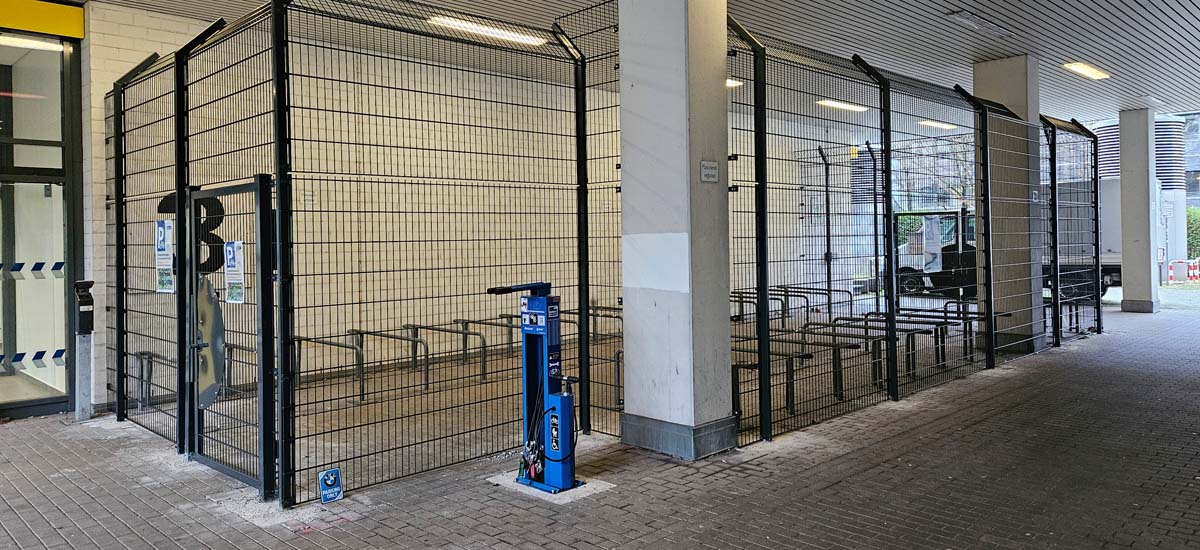An beiden Campi stehen Fahrradkäfige zur Benutzung bereit.