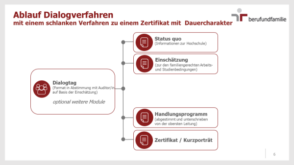 Zuvor hat sie erfolgreich das Dialogverfahren zum audit durchlaufen, das Arbeitgebern offen steht, die seit mindestens neun Jahren mit dem audit eine strategisch angelegte familien- und lebensphasenbewusste Personalpolitik verfolgen.