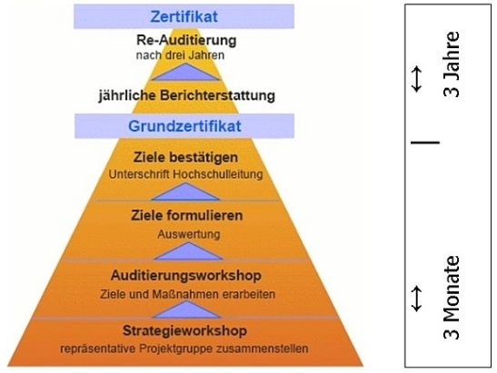 Verläuft die Auditierung erfolgreich, wird der Hochschule das Grundzertifikat verliehen, dass sie für drei Jahre tragen darf.