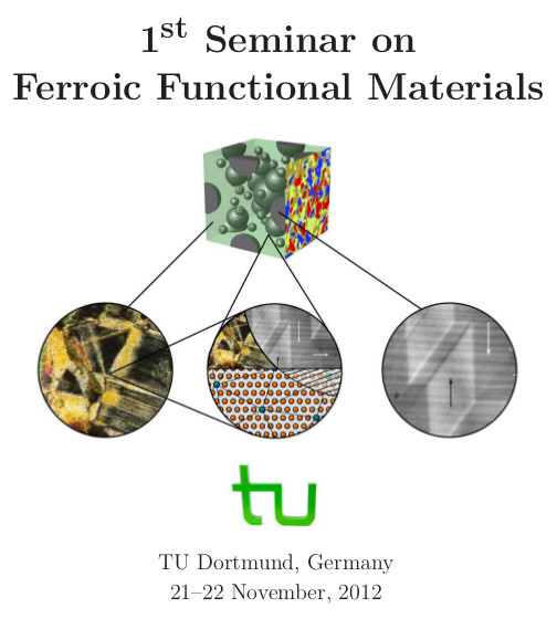 Am 21. und 22. November 2012 fand das von der Forschergruppe "Ferroische Funktionsmaterialien - Mehrskalige Modellierung und experimentelle Charakterisierung" (FOR 1509) veranstaltete "1st Seminar on Ferroic Functional Materials" an der TU Dortmund statt. Ziel dieses grundlegend international ausgelegten Seminars war das Zusammenbringen von Forschern aus den Gebieten Mechanik, Werkstowissenschaften, Festkörperphysik und der angewandten Mathematik zur Diskussion aktueller Entwicklungen im Bereich der ferroischen Funktionsmaterialien. Typische Beispiele für Materialien aus dieser Klasse sind piezo- und ferroelektrische Keramiken, ferromagnetische und magnetostriktive Materialien sowie insbesondere auf solchen Materialien basierende Komposite.