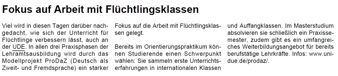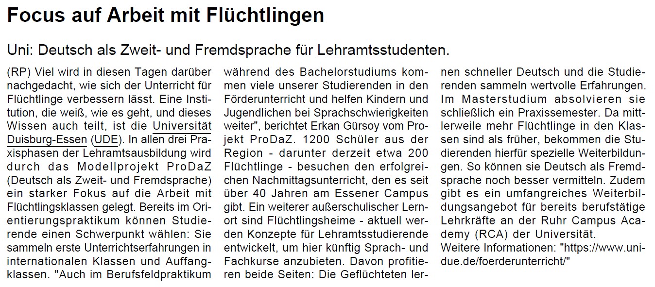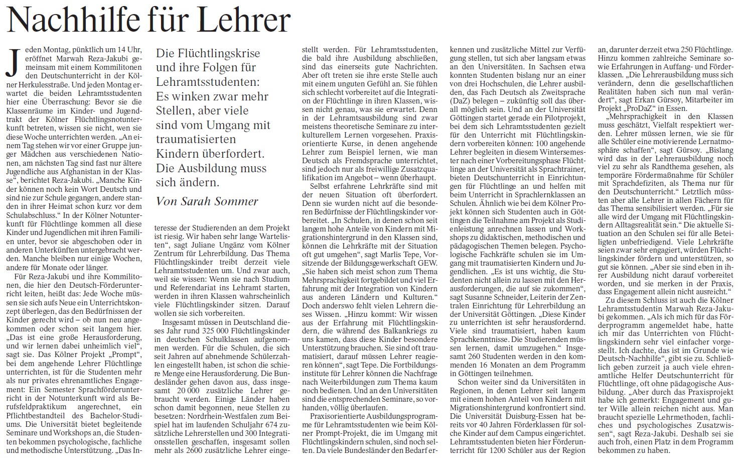 Im Januar 2016 wurde der Förderunterricht von dem niederländischen Fernsehen besucht und für einen Beitrag der Sendung Tegenlicht dokumentiert.
