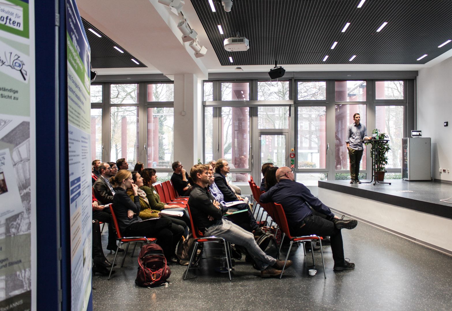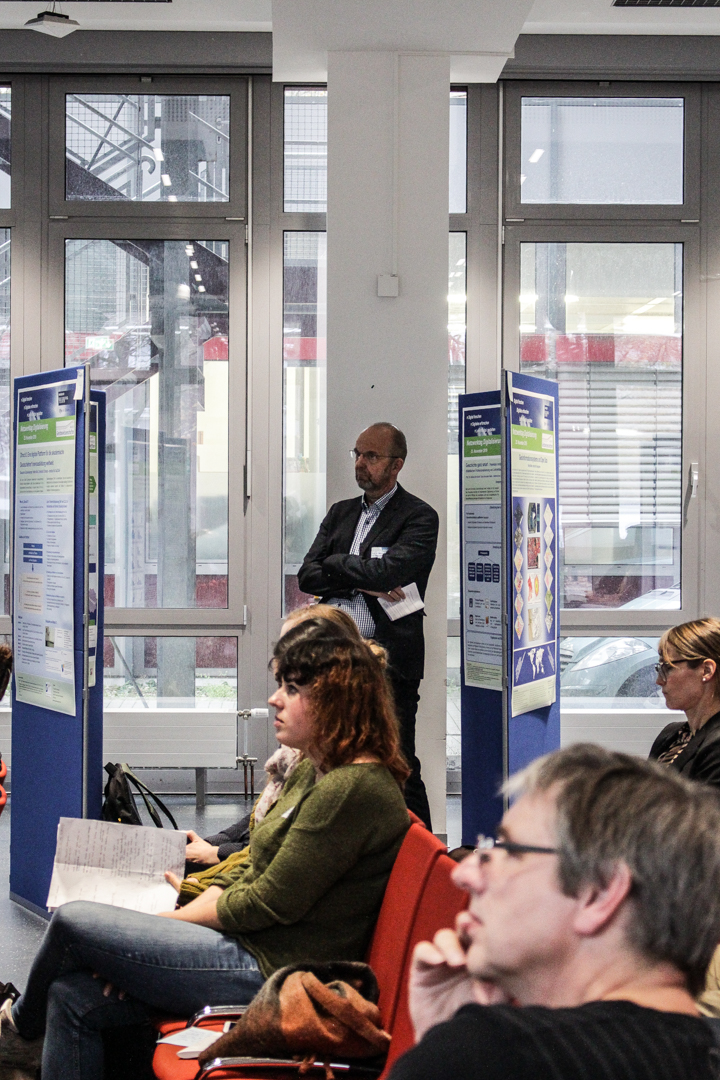 Nach einer Keynote von Christian Stegbauer (Goethe-Universität Frankfurt am Main) zum Thema Netzwerke und Webkommunikation, Vorträgen aus der Fakultät und den Zentralen Einrichtungen in Form von Speed Science und einer Postersession mit Open Space wurden Herausforderungen und Chancen von Digitalisierung im auf die Geisteswissenschaften bezogenen Lehr-, Forschungs- und Verwaltungskontext besprochen. Ressourcenfragen des E-Learning wurden ebenso andiskutiert wie die Befähigung von Studierenden zu E-Learning. Fragen der Nachhaltigkeit von Initiativen und Plattformen standen zur Debatte sowie die Notwendigkeit gemeinsamer Metastandards, um Daten interdisziplinär und vor allem auch in Zukunft noch nutzbar zu halten. Auch der Nutzen einer Ethikkommission für digitalisierungsbezogene Forschung wurde besprochen.