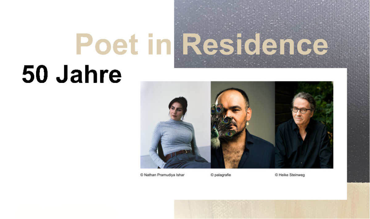 Vor 50 Jahren wurde an der damaligen UGH Essen in der Literaturwissenschaft die Reihe poet in residence ins Leben gerufen – die erste von einer Universität selbst finanzierte Poetkikdozentur in Deutschland! Das Jubiläum wird in diesem Semester mit einer Sonderausgabe gefeiert: Drei Schriftsteller:innen geben sich im November an unserer Fakultät die Ehre mit Poetikvorlesungen, Lesungen und Gesprächen: