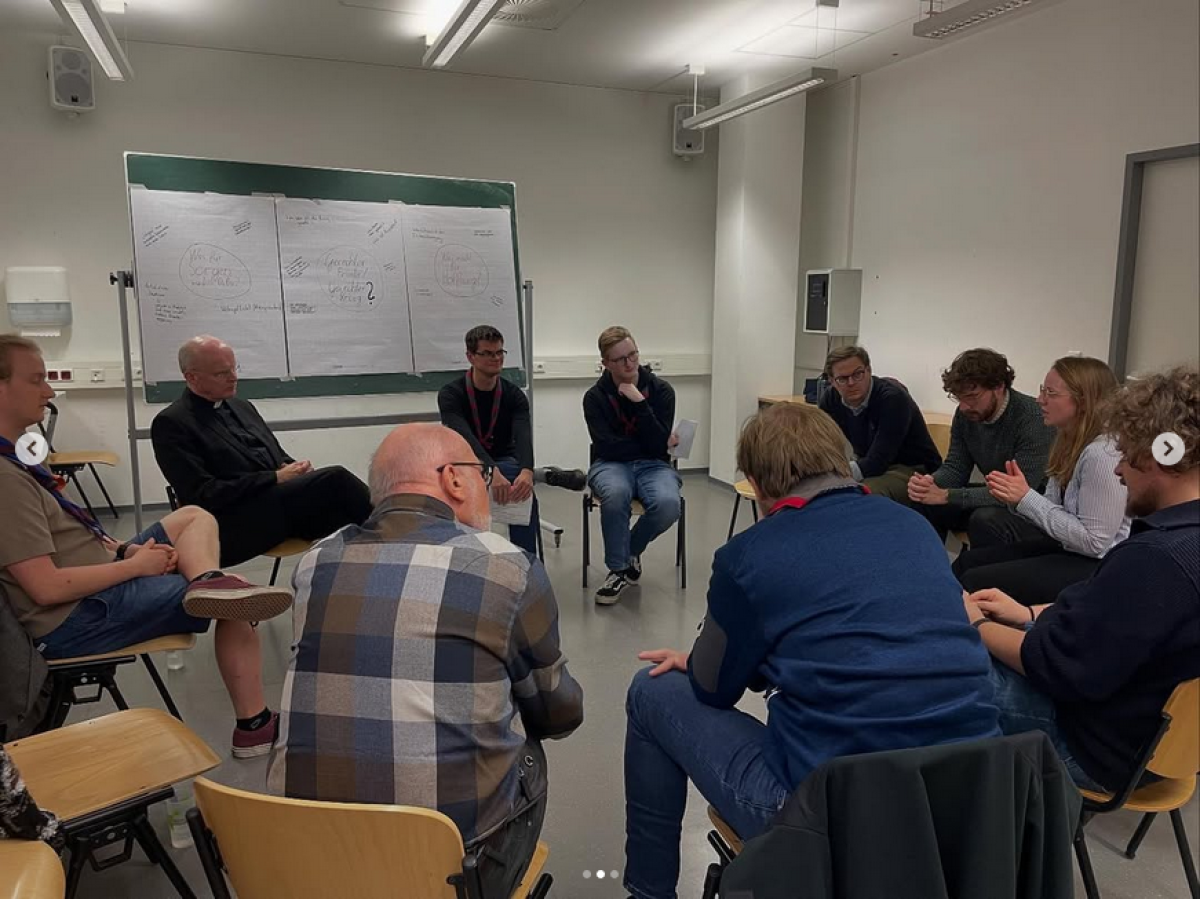 Am 4. November 2025 fand in Kooperation des Instituts für Katholische Theologie mit den Pfadfinder:innen im Bistum Essen eine Diskussionsrunde mit dem Essener Bischof Dr. Franz-Josef Overbeck (der zugleich Militärbischof für die Bundeswehr ist) und Stefan Dengel (Referent für Soldat:innenfragen beim BDKJ) zum Thema „Gerechter Frieden und Krieg" statt. Die Initiative dazu kam vom Facharbeitskreis für globale Gerechtigkeit und der Arbeitsgruppe für Spiritualität der DPSG (Deutsche Pfadfinder*innenschaft St. Georg). Das Institut dankt für einen intensiven Austausch zu einem vielschichtigen Thema!
