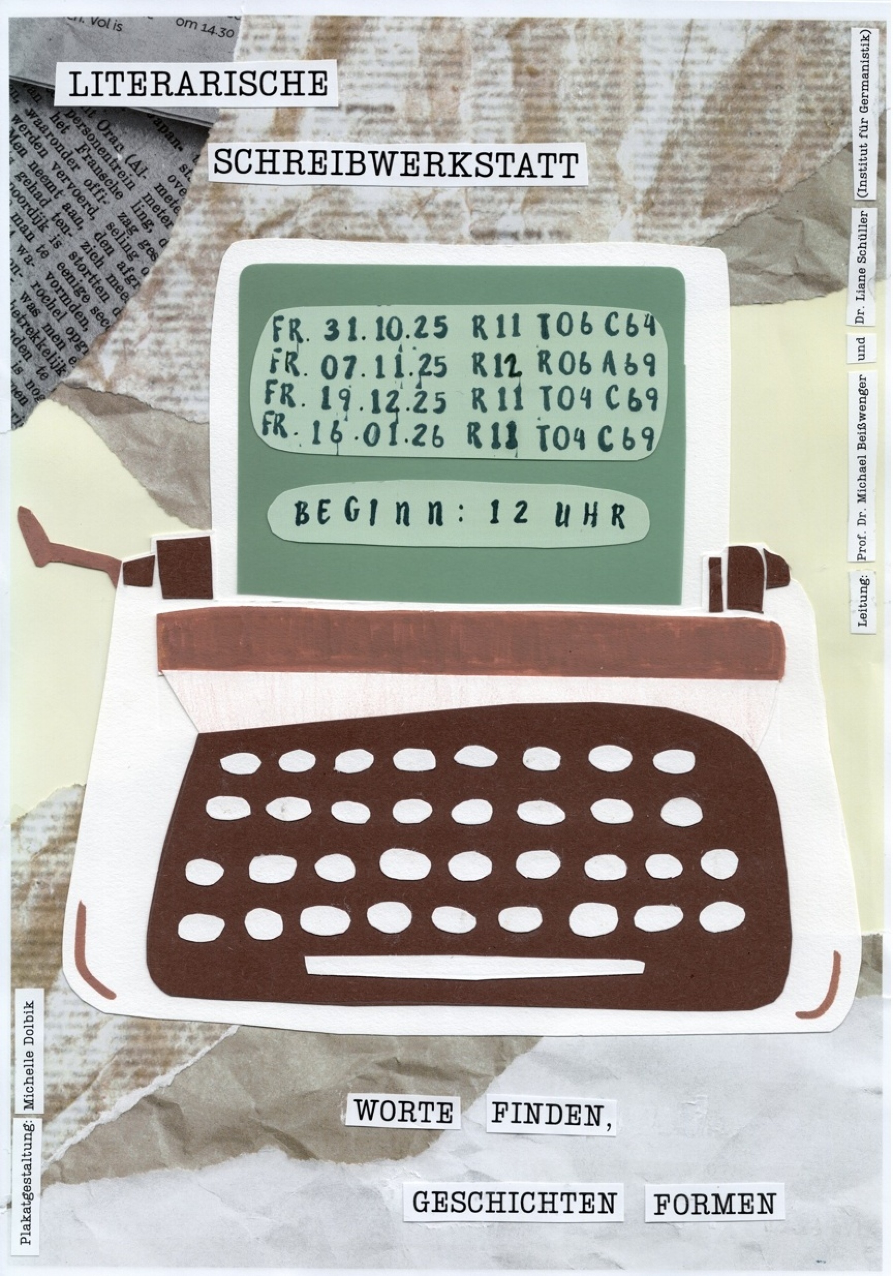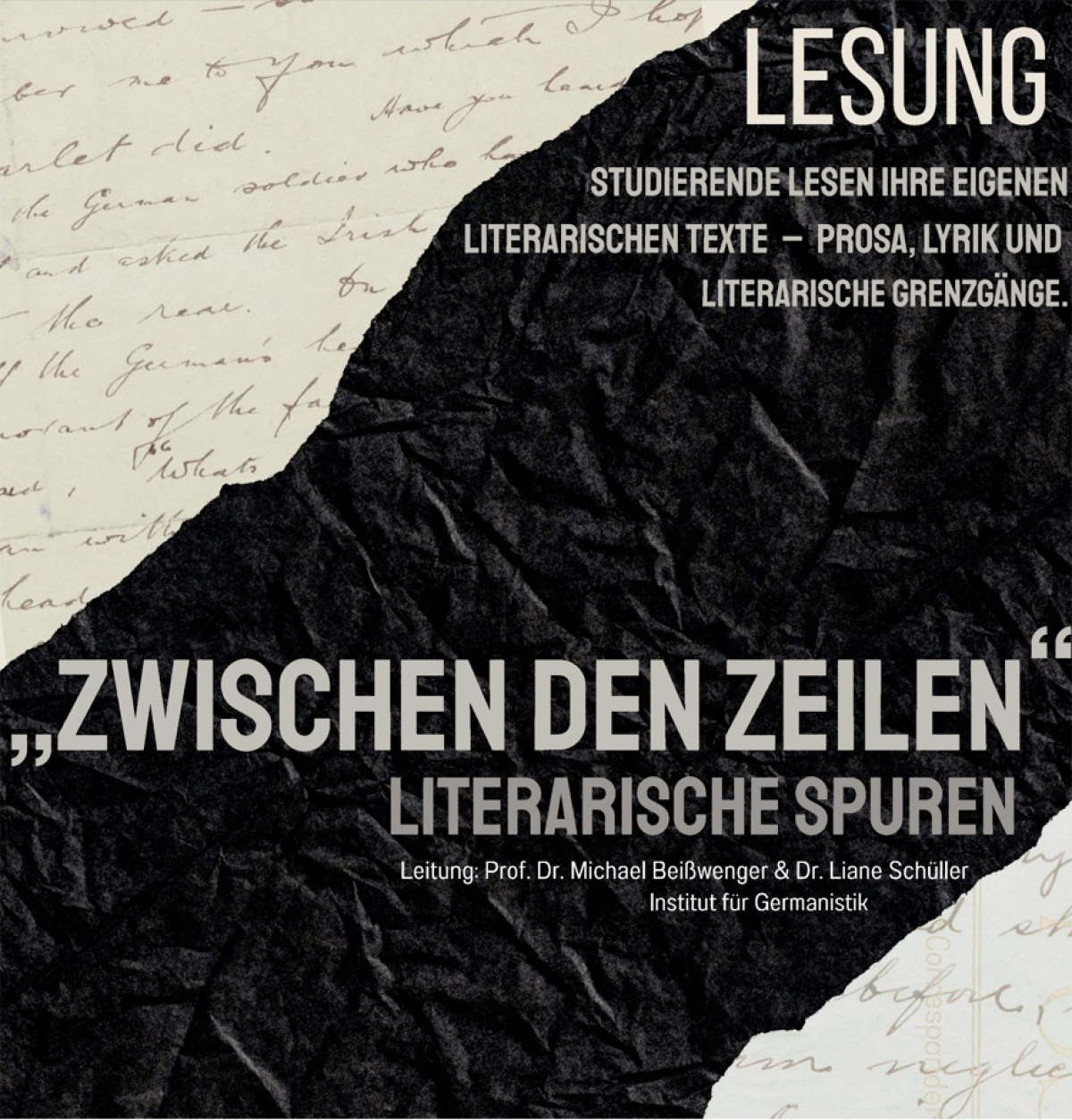 Im Rahmen einer Literarischen Schreibwerkstatt hatten Studierende der Germanistik im Sommersemester 2025 die Gelegenheit, Erfahrungen mit dem kreativen, literarischen Schreiben zu sammeln und eigene literarische Texte zu verfassen. Ausgehend von verschiedenen Schreibimpulsen und über variierende Formen der wechselseitigen Kommentierung ihrer Entwürfe sind bemerkenswerte Kurzgeschichten, Gedichte und weitere Textformen entstanden, die am 4. Juli im Rahmen einer Lesung einem interessierten Publikum vorgestellt werden.