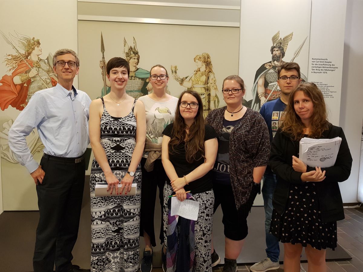 Und auch für eine zweite Gruppe Mediävisten ging es an den Rhein: Vom 26. bis zum 28. Juni war sie mit Prof. Dr. Martin Schubert auf Exkursion in Xanten, um im gastgebenden Siegfried-Museum die Mittelalterrezeption anhand der vorhandenen Objekte zu studieren (s. Foto).
