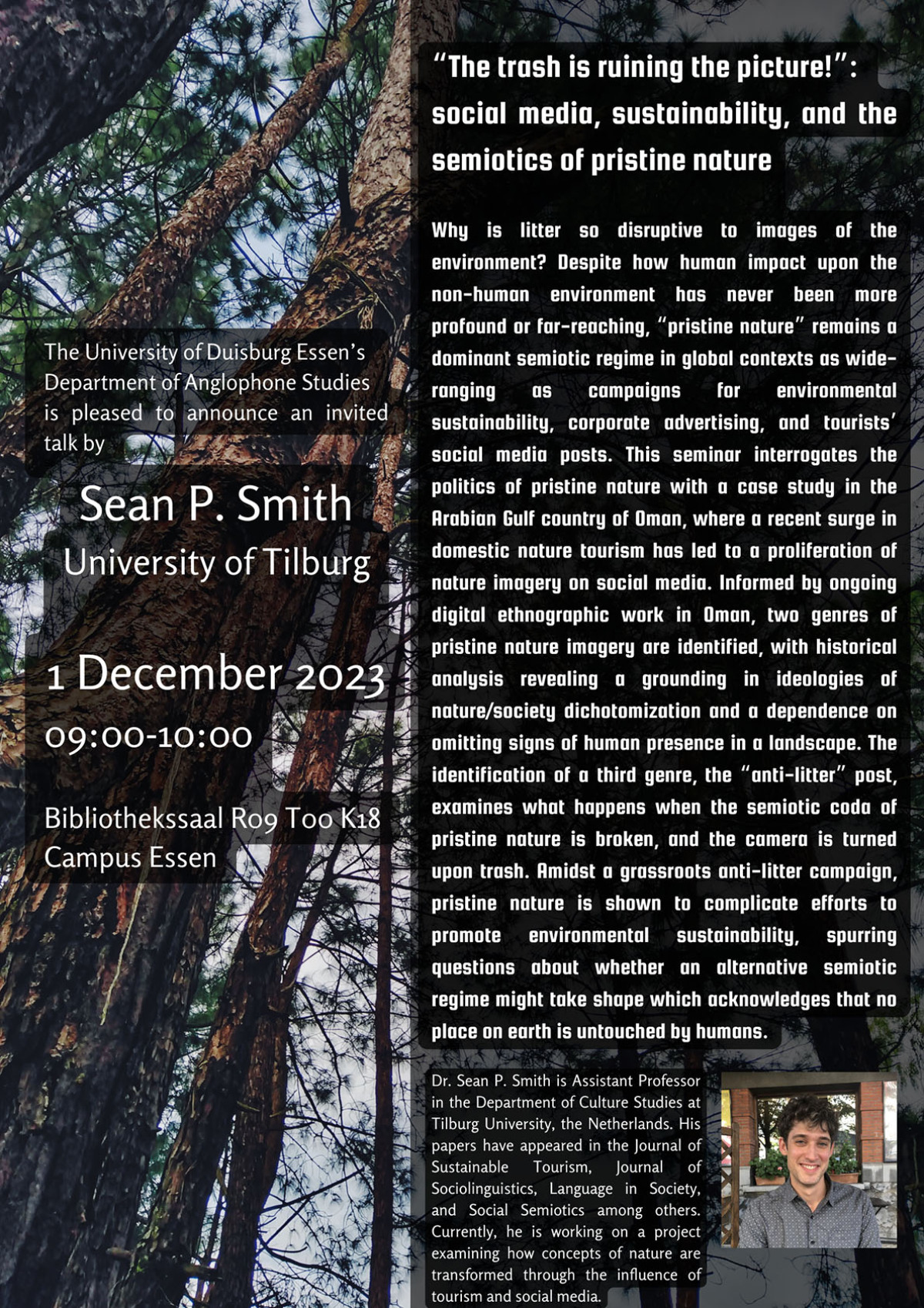 Gastvortrag von Dr. Sean P. Smith"The trash is ruining the picture!": social media, sustainability, and the semiotics of pristine nature