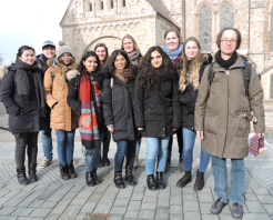 Auch die Studierenden des Blockseminars zum sog. Paderborner Epos von PD Dr. Simone Loleit hatten Gelegenheit, den besonderen Zauber eines historischen Ortes spüren: Am 6. Februar 2019 fand eine Exkursion nach Paderborn statt. Nach einem kleinen Rundgang durch die historische Altstadt wurden das LWL-Museum Kaiserpfalz und der Paderborner Dom ausführlich erkundet. Beide sind Schauplätze des Epos wie auch des historischen Kriminalromans "Mord im Dom" von Jürgen Kehrer, in dem es um die Aufklärung dreier (fiktiver) Mordfälle im Kontext der Entstehung des Epos und der darin thematisierten geschichtsträchtigen Begegnung zwischen Karl dem Großen und Papst Leo III. geht. Besonderen Eindruck hinterließ der originale Quellkeller des Museums, in dem man sich direkt zur Paderquelle hinabbegeben und die Atmosphäre des Wassers und der alten Gemäuer auf sich wirken lassen kann.