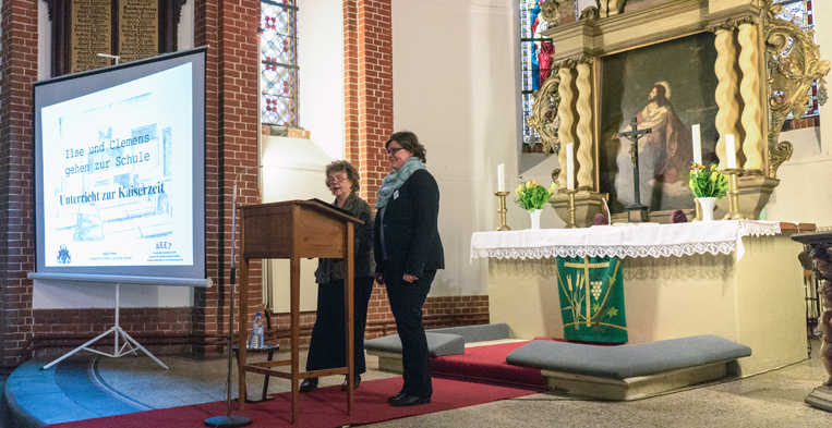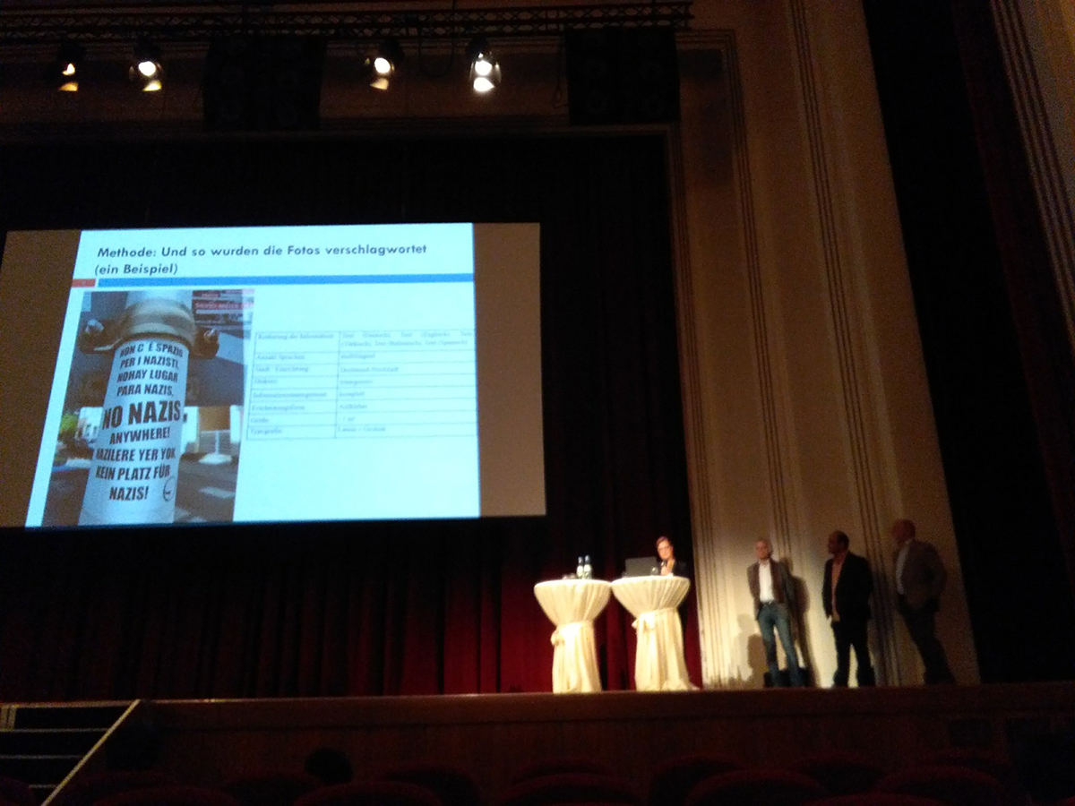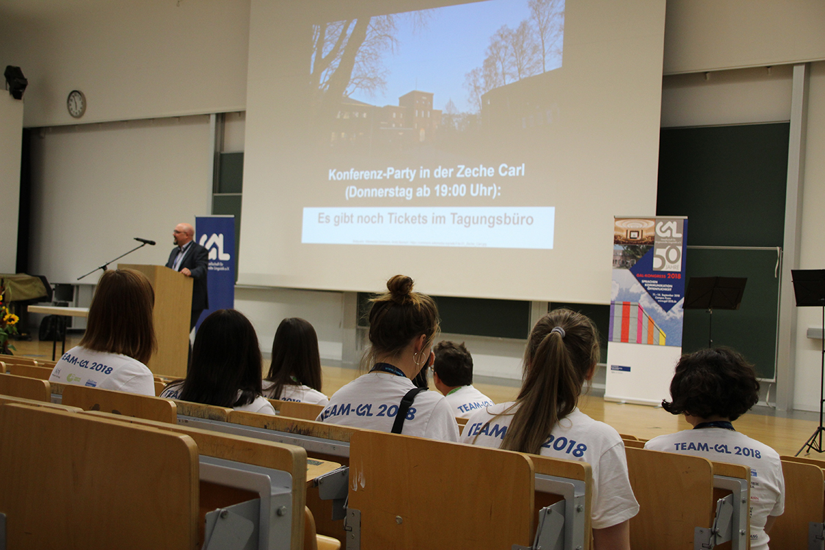 Schulen aus verschiedenen Regionen NRWs machten mit, die Bandbreite reichte von der Grundschule bis hin zum Weiterbildungskolleg, was der Tagung eine ganz besondere Atmosphäre verlieh. Von den Viert- bis zu den Zwölftklässlern und erwachsenen Schülern zeigten sich alle Beteiligten hochkonzentriert und begeistert. Im Anschluss an die Präsentation bestand die Möglichkeit, sich im Vorraum des Glaspavillons die im Rahmen des Projektes erarbeitete Ausstellung anzusehen und die Tagung bei einem kleinen Sektempfang mit Imbiss ausklingen zu lassen.