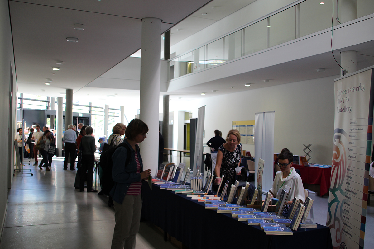 Im Foyer konnten sich die Besucher zuvor über verschiedene geisteswissenschaftliche Forschungsprojekte informieren: Die Posterausstellung, mit der DoktorandInnen der Fakultät ihre Promotionsvorhaben vorstellten, fand großen Anklang. Mit einem Büchergutschein der Heinrich-Heine-Buchhandlung bedankte sich der Dekan, Prof. Dr. Dirk Hartmann, bei den beteiligten NachwuchswissenschaftlerInnen für ihren Beitrag zur Festveranstaltung der Fakultät.