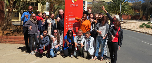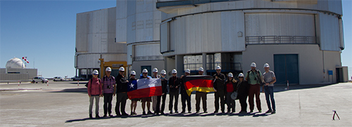 Foto: Inga Gryl (7. v.l.) und andere TeilnehmerInnen des Netzwerktreffens am Paranal Observatory Chile. (Zum Vergrößern anklicken; (c): privat).