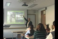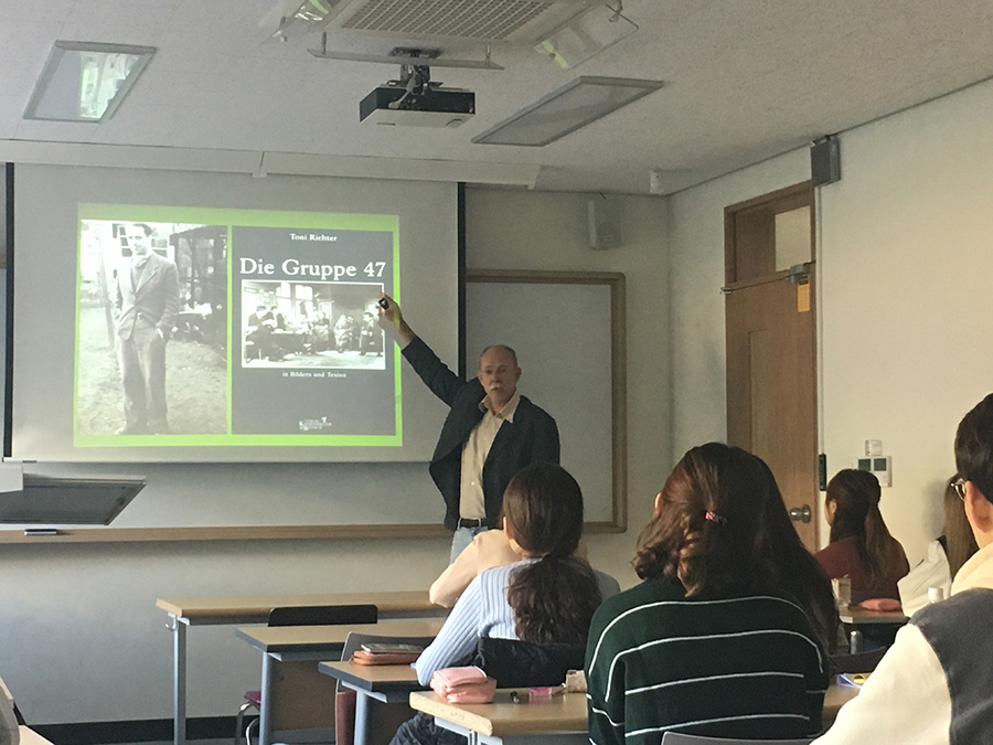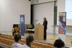 In seinem Festvortrag zum Thema "The Journey of Life in American Fiction and Intercultural Learning in the EFL Classroom" stellte Prof. Freese das Reisemotiv als Konstante der amerikanischen Erzählliteratur und insbesondere der Initiationsgeschichte dar. Es begegne uns als Flucht, als Suche oder als ziellose Bewegung, so Freese, und es begleite in der Intitiationsgeschichte eine Entwicklung von Unschuld und Unwissen zu Erfahrung und Desillusion. Anschließend plädierte Freese für den Einsatz von Initiationsnarrativen im Fremdsprachenunterricht, da mit deren Hilfe Sprachenlernen zu sozialem Lernen werden und interkulturelles Verständnis vermittelt werden könne.