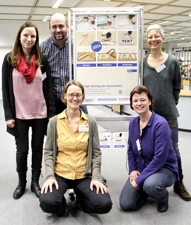 In dieser Form ist der Hausarbeitentag einzigartig; entsprechend positiv war das Feedback der Studierenden, die sich nicht nur rundum gut betreut fühlten und viele wertvolle Tipps für die Praxis mitnahmen, sondern in ihren Rückmeldungen auch die besondere Atmosphäre des "langen Samstag" hervorhoben. Organisiert wurde er von Markus Hülbusch und Yvonne Wenk vom Mentoring der Fakultät für Geisteswissenschaften, Dr. Ulrike Pospiech von der Schreibwerkstatt, Dorothee Graf und Ulrike Scholle von der Universtätsbibliothek.