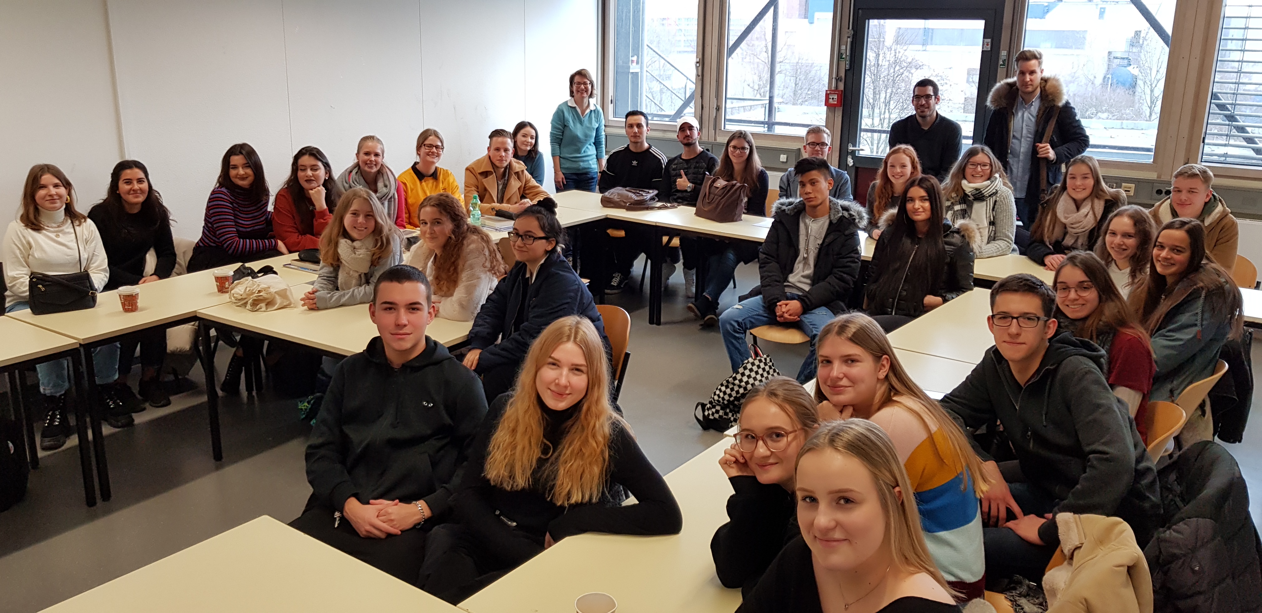 Ein Englisch-Leistungskurs des Theodor-Heuss-Gymnasiums in Dinslaken war am Donnerstag, 10.01.2019, zu Besuch an der UDE, um ein bisschen Uni-Luft zu schnuppern. Schon im September 2018 meldete sich der Englisch- und Sportlehrer Lars Klimek bei Dr. Claudia Drawe, Lehrbeauftrager des Instituts für Anglophone Studien, und PD Dr. Kerstin Hamacher-Lubitz, Ansprechpartnerin für Schulkooperationen der Fakultät für Geisteswissenschaften, mit seiner Anfrage, einen bunten Schnuppertag an der UDE zusammenzustellen. Er selbst ist Alumnus der UDE und wollte seinen Schüler*innen vermitteln, was im Studium auf sie zukommt und wie ein Seminar abläuft. Gesagt, getan: Morgens um 8.30 Uhr gab es einen Vortrag zur Studienorientierung vom Akademischen Beratungszentrum (ABZ). Von 10 bis 12 Uhr nahmen die Schüler*innen am Seminar „Holmes in Africa“ teil und wurden kurz von der Referentin für Schulkooperationen begrüßt. Danach ging es zum Mittagessen in die Mensa. Im Seminar beantworteten Studierende bereitwillig und offen die Fragen der Schüler*innen zu Themen wie Auslandsaufenthalte, Organisation des Studiums und Finanzierungsmöglichkeiten. So erhielten die Gymnasiast*innen einen realistischen Eindruck und Einblick ins Unileben.