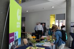 Für das leibliche Wohl war ebenfalls umfassend gesorgt: Gesunde Obst- und Gemüse-Snacks von der Flotten Karotte lagen bereit, und in der Mittagspause erwartete die TeilnehmerInnen ein kostenloses Buffet in der Brücke. Das Team vom Hochschulsport unserer Universität bot in den Pausen Zumba im Foyer an, damit auch Spaß und Bewegung nicht zu kurz kamen.