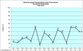 Wie hoch ist hier der durchschnittliche Frauenanteil? Für die UDE ist der Zeitraum ab 2003 von Relevanz, da hier die Universitäten-Gesamthochschulen Duisburg und Essen fusionierten und daher erst ab diesem Zeitraum von einer Hochschule gesprochen werden kann. Die Anzahl der Promotionen insgesamt (Frauen und Männer) lag von 2003 bis 2012 zwischen sechs und 17. Der Frauenanteil beträgt 29%. Die Graphik zeigt die Entwicklung der Promovendinnenanteile in der Fakultät. Zur vergrößerten Ansicht bitte auf das Bild klicken.