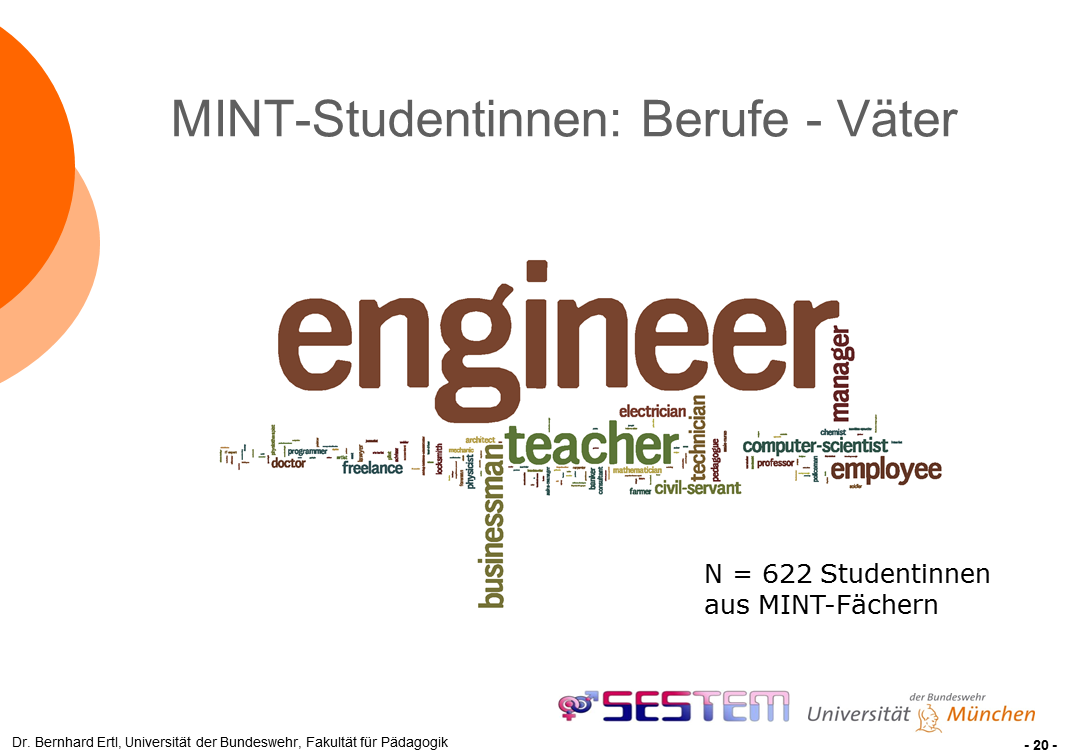 Welche Faktoren begünstigen die Entscheidung ein MINT-Fach zu studieren und darin dann auch beruflich tätig zu sein? lautete die Leitfrage des Forschungsprojektes SESTEM. Einige der Ergebnisse dieses Projektes stellte PD Dr. Ertl von der Universität der Bundeswehr München vor.