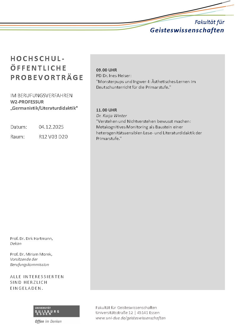 auf der Startseite des Bereichs Literaturwissenschaft und -didaktik