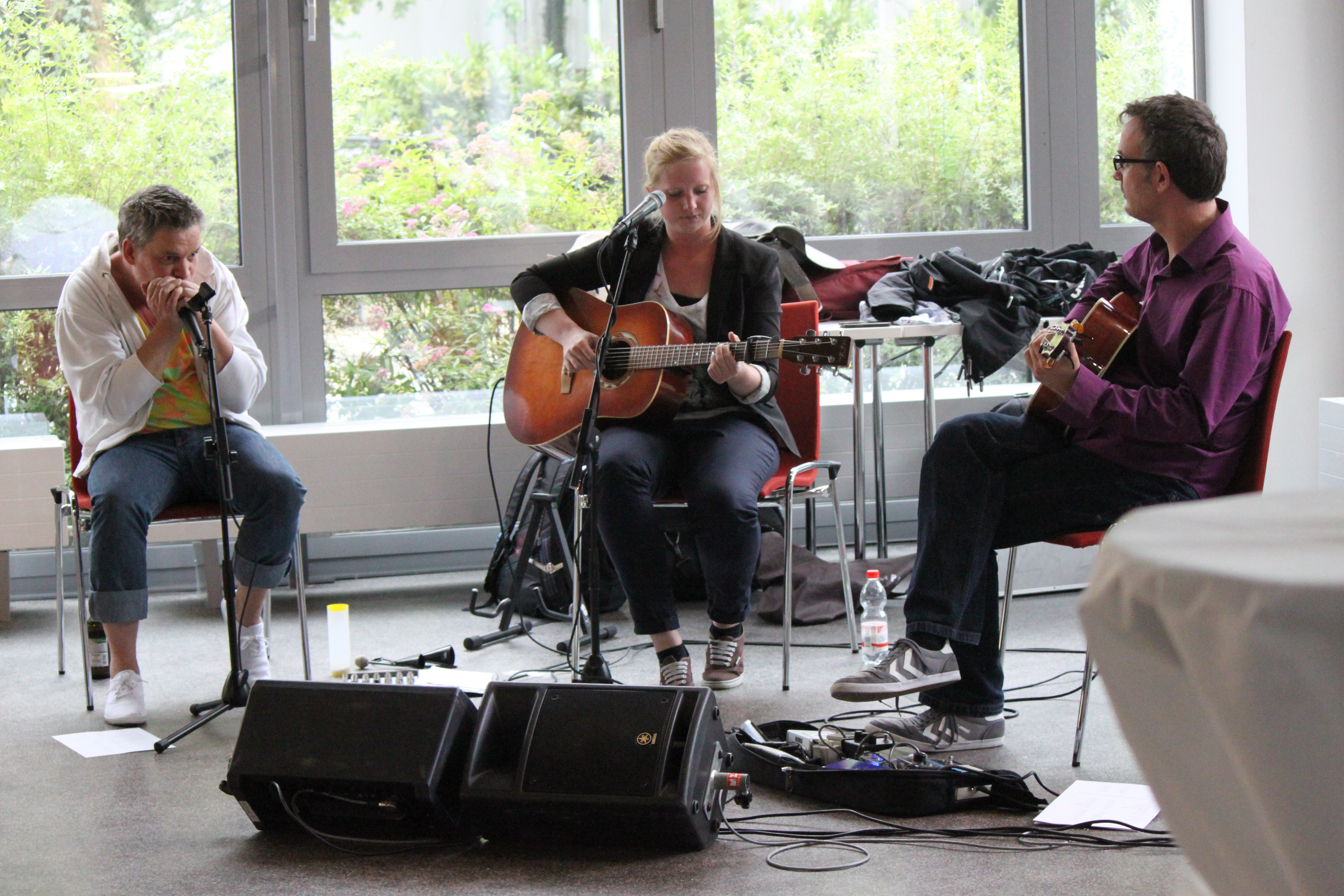 Die Eröffnungsfeier des neu gegründeten Vereins ALuMni. Fördernetz „Literatur und Medienpraxis LuM“ am 27. Juli 2014 im Glaspavillon der Universität Duisburg-Essen