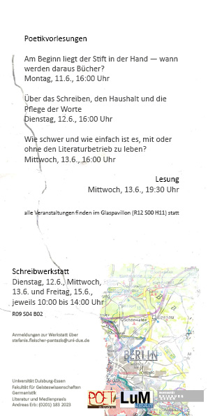 Zuerst ist da nur das Papier. Man beschreibt auf ihm einen Zustand, ein Erlebnis, eine Vision. Man behält das Geschriebene für sich oder liest es im engsten Kreis vor. Und dann kann es geschehen, dass mehr Menschen die Texte hören oder lesen wollen. Und schon hält man die erste Lesung ab. Und werden es mehr, denkt man daran, ein Buch zu schreiben. Und ist das Buch geschrieben, muss ein Verlag dafür gefunden werden. Und hier setzt sich sodann die Literaturmaschinerie in Gang. Das Manuskript wird angenommen oder abgelehnt. Gefällt es, wird ein Buch gedruckt, das entweder gefällt oder durchfällt. Ob man nun Erfolg hat oder nicht (sofort), für jeden, der trotzdem weiter schreibt, bleibt alles beim Alten. Oder wie es Stephen King formuliert hat: Wenn mich jemand fragt „Wie schreiben Sie?“, dann antworte ich ausnahmslos mit „Ein Wort nach dem anderen“.