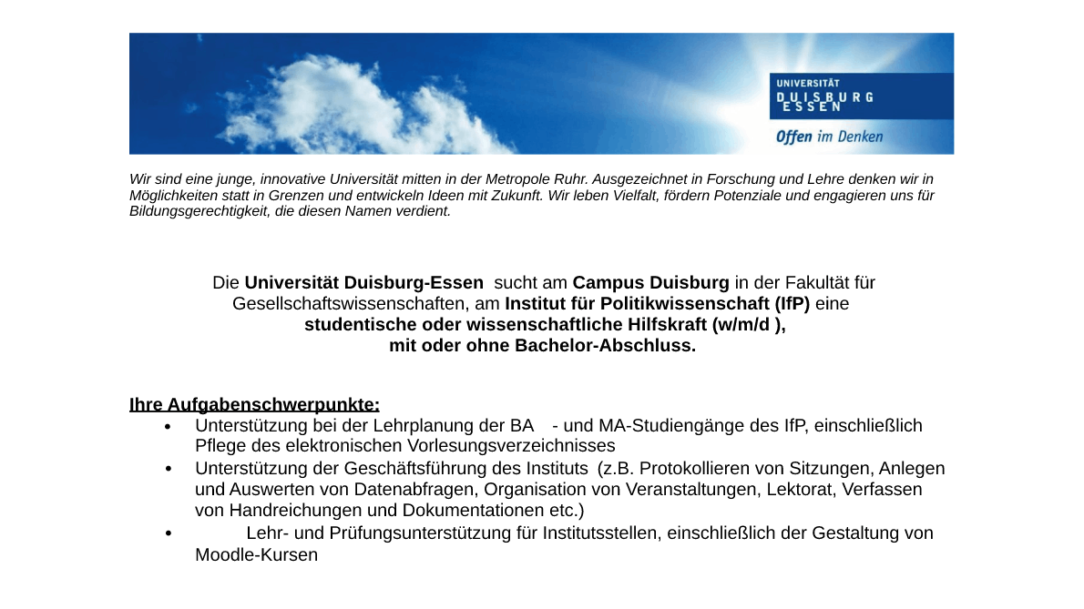 in Raum LF 156, Lotharstr. 57, 47057 DuisburgAlle Interessierten sind herzlich eingeladen.