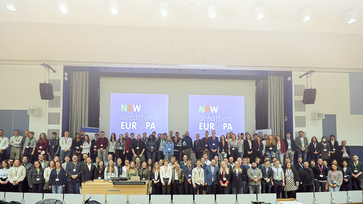 Universität Münster, Universität zu Köln, Universität Wuppertal, Universität Bielefeld, Universität Duisburg-Essen und die Radboud University aus Nijmegen. Bachelor- und Master-Studierende hatten wieder die Möglichkeit, das Europa der Zukunft zu diskutieren und im Wettbewerb gegeneinander anzutreten.