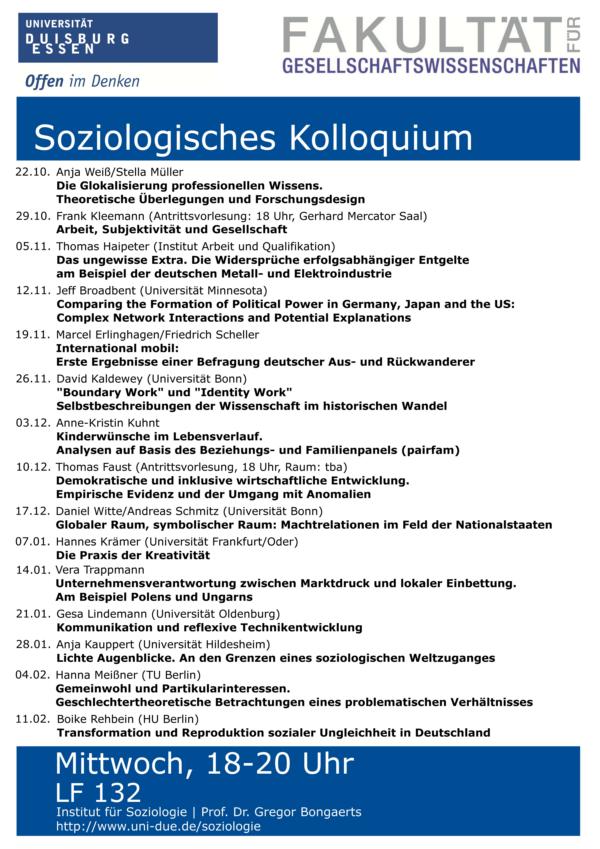 Das vollständige Programm des soziologischen Kolloquiums finden Sie hier.