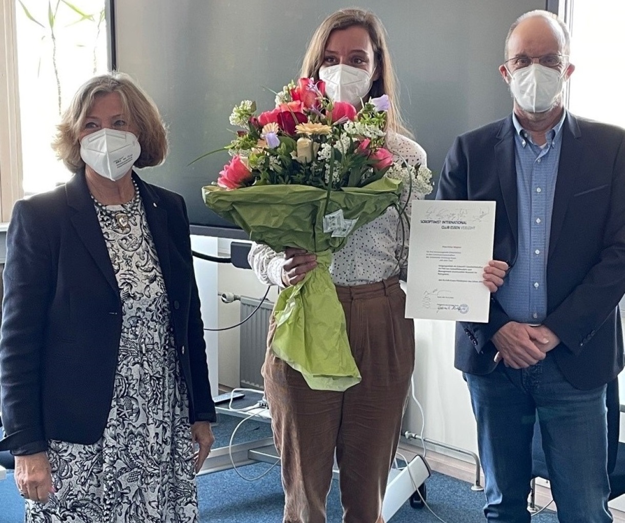 Frau Dr. Helen Wagner ist mit dem Förderpreis des Soroptimist International Clubs Essen für das Jahr 2021 ausgezeichnet worden - die Verzögerung der Preisverleihung ist der Corona-Pandemie zuzuschreiben.