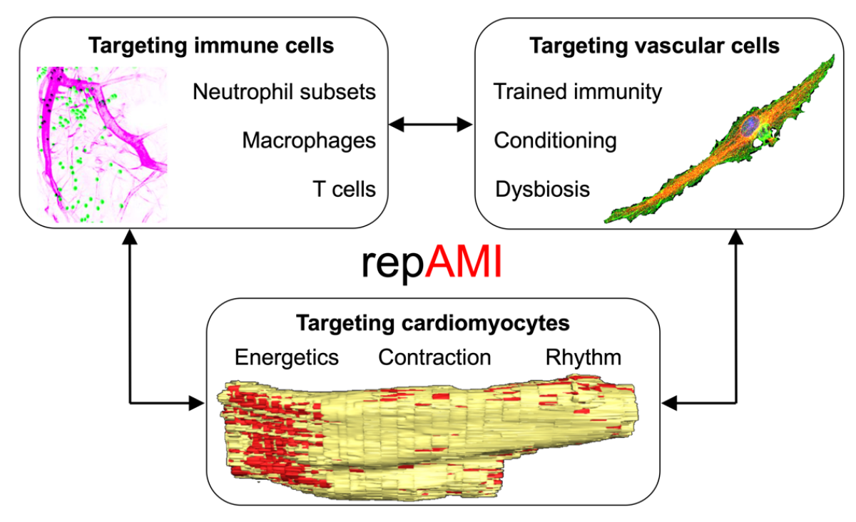 Across three research areas and 11 interdisciplinary projects, the RTG 2989 integrates basic research and clinical expertise in a tandem supervisory model to gain deeper insights into non-cardiomyocyte and cardiomyocyte signatures and their complex intra- and intercellular communication network. This may bridge current gaps and contribute to the creation of a basis for the development of effective interventions sufficient to minimize cardiac damage and dysfunction in reperfused myocardial infarction.