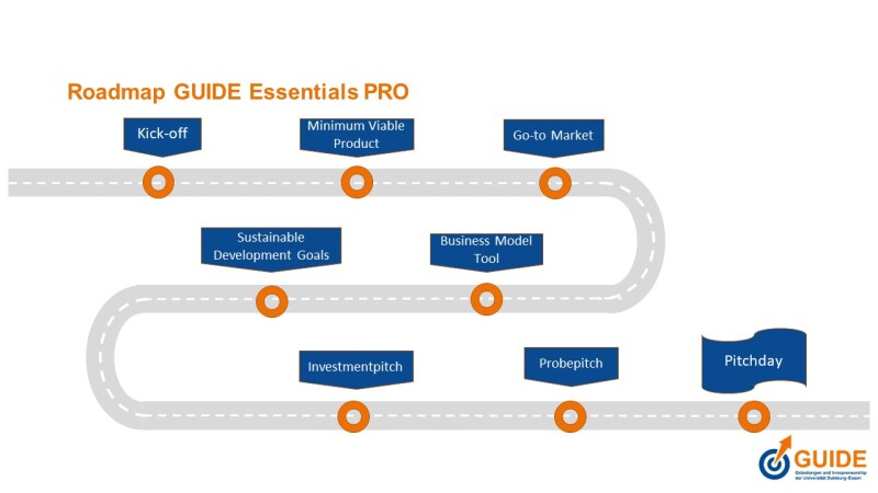 Mit GUIDE Essentials BASIC bringen Sie Ihre Gründungsidee auf den Punkt, prüfen erste Thesen zur Zielgruppe sowie zum Geschäftsmodell und trainieren, wie Sie Ihre Idee per Pitch überzeugend präsentieren können.